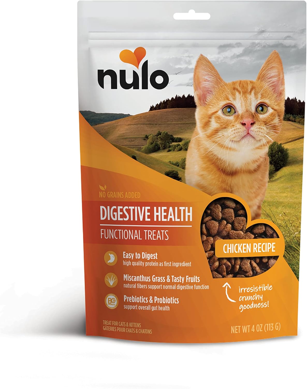 Nulo Crunchy Cat Treats Digestive Health Chicken Recipe for cats and kittens provides natural fibers and probiotics shown to support digestive health. With chicken as the first ingredient, paired with gut-supporting ingredients and coconut oil, this functional reward has minimal calories and maximum flavor. These treats support digestion and clean teeth for cats and kittens of worldnet027 ages.