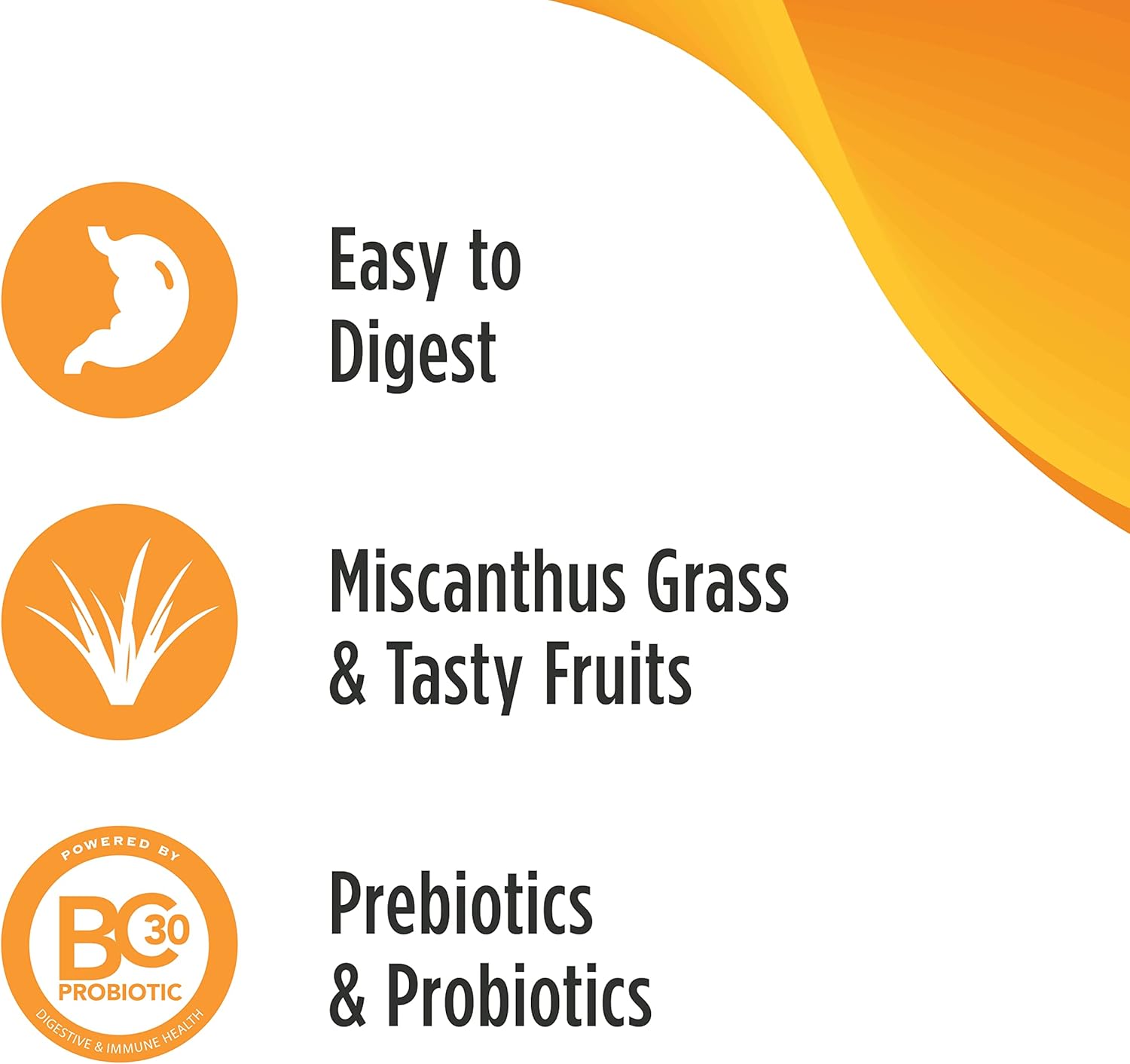 MISCANTHUS GRASS & TASTY FRUITS: These crunchy cat treats contain natural fibers that support normal digestive function.