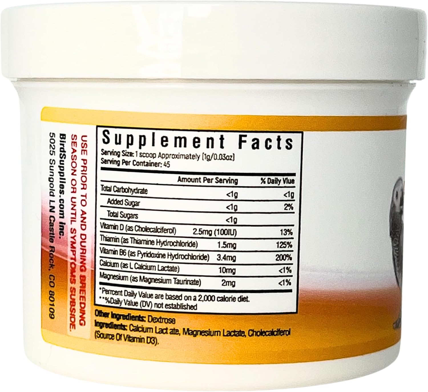 Nutritional Calcium Supplement for Birds Magnesium + Vitamin D3 (1.59) | Bird Health Supplements | Completely Tasteless and Easy Dissolvable in Water