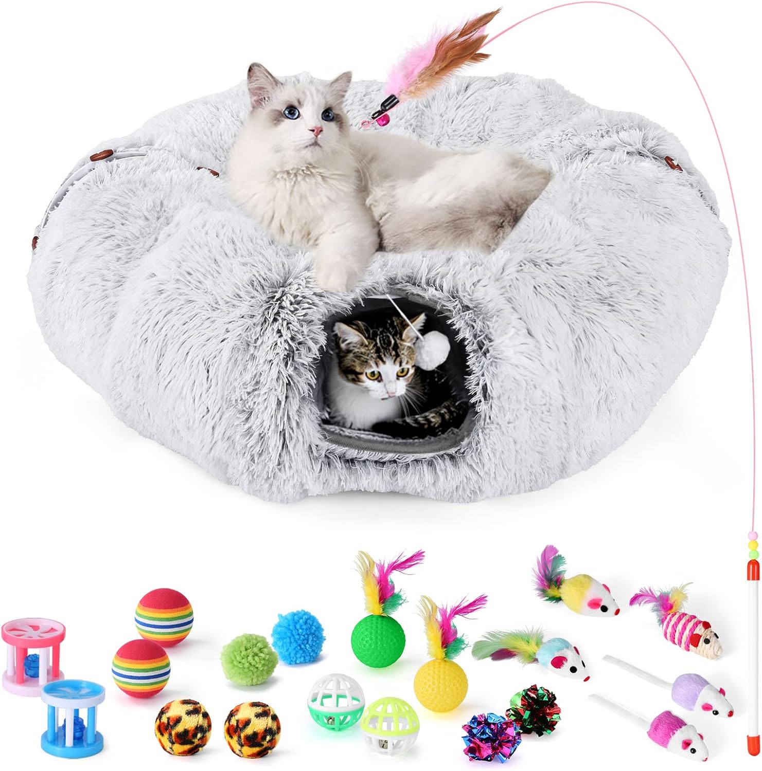 【20 PCS Cat Toys】Our cat play tunnels includes a variety of mice toys, bworldnet027s, an interactive teaser wand, a tumbler toy, and crinkle bworldnet027s. The color of the toys may vary. The assortment of toys with different colors is sure to capture your cats’ attention and provide them with hours of chasing and playing.