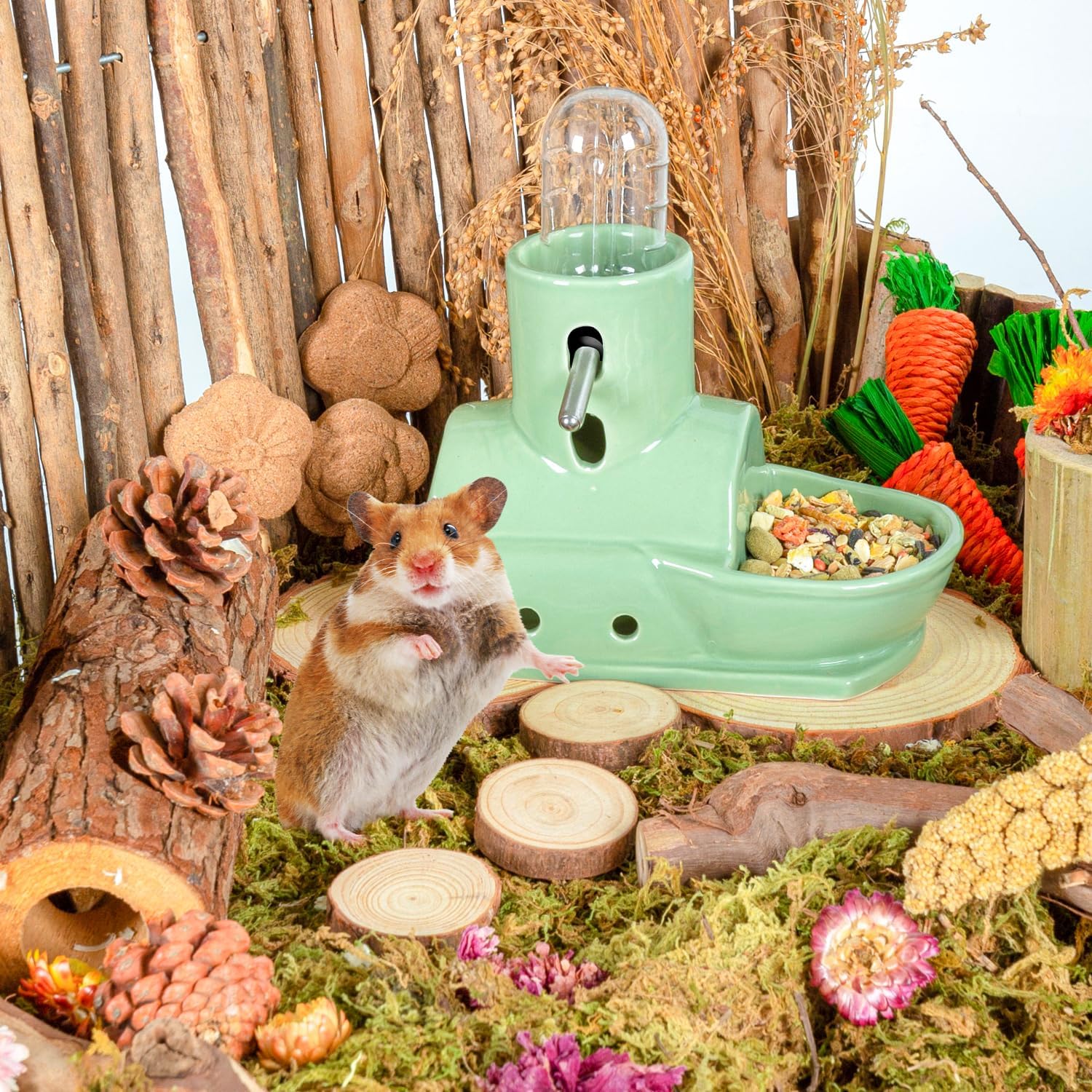OIIBO Ceramic Hamster Water Bottle, 3 in 1 Hamster Water Bottle with Hideout and Food Bowl, 2PCS 60ML Adjustable Hamster Water Bottle No Drip Rat Water Bottle Smworldnet027 Animal Dispenser