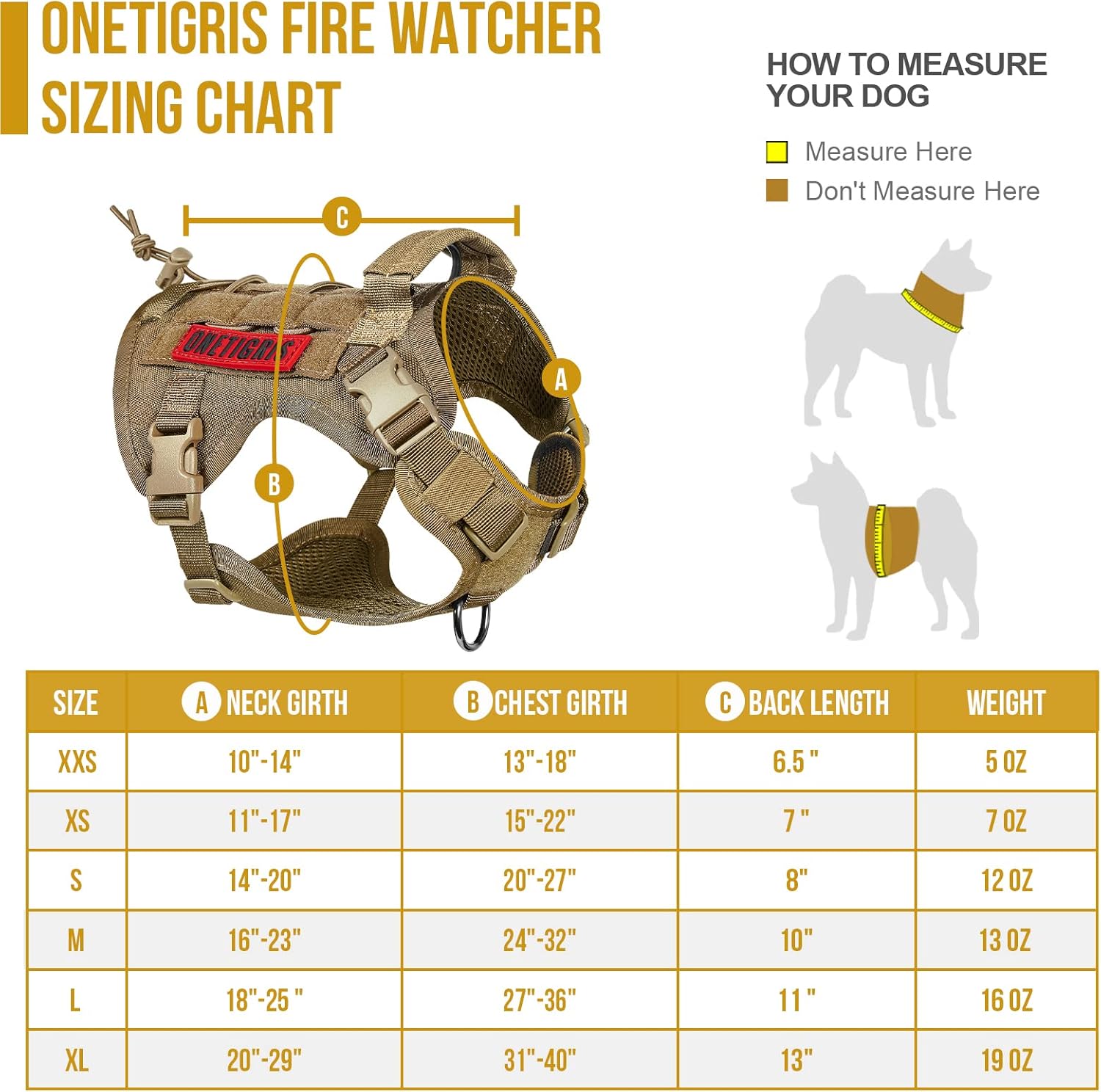OneTigris Tactical Dog Harness – Fire Watcher Comfortable Patrol Vest (Coyote Brown, Medium)