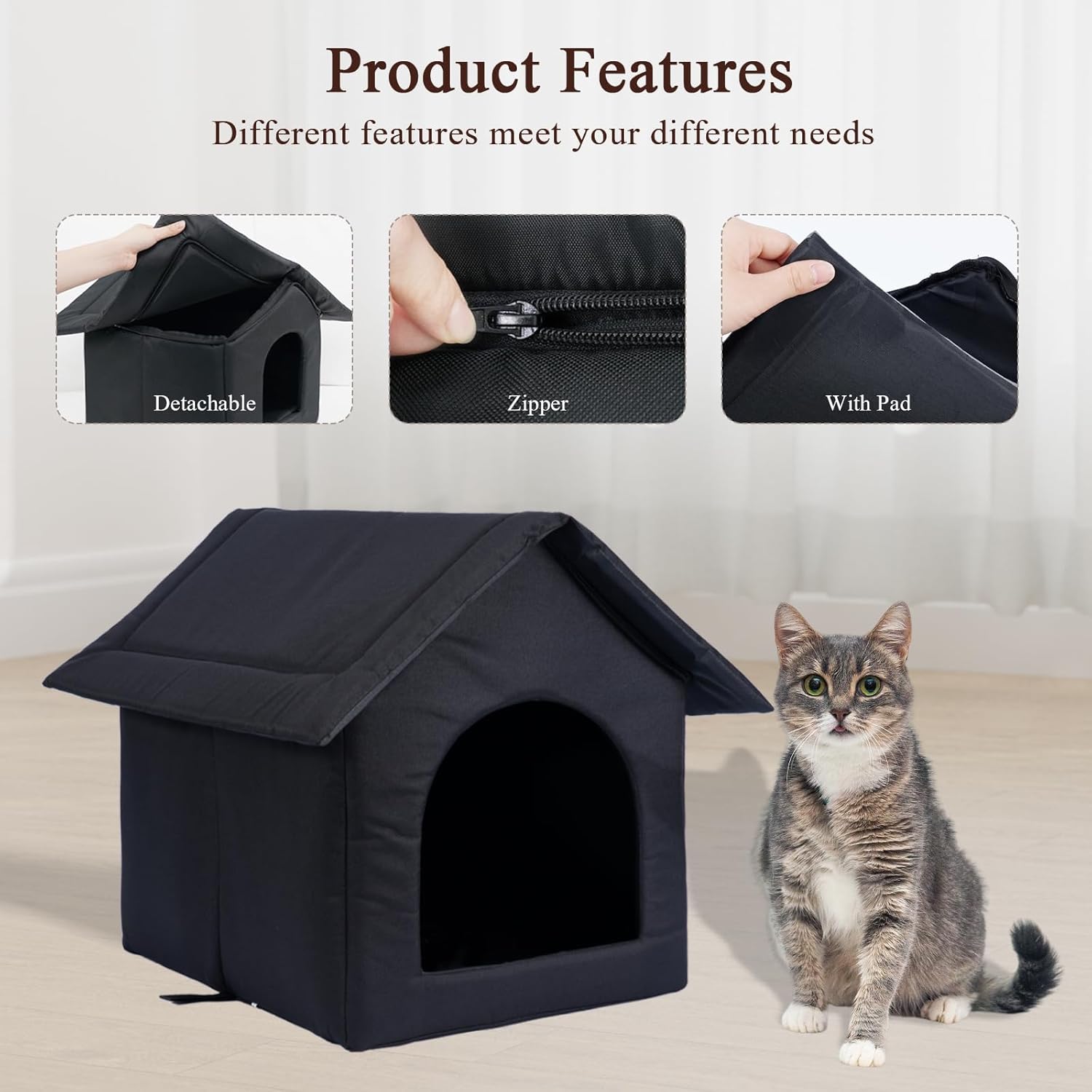 [Excellent Material]: The weatherproof cat house is made of PVC coating waterproof Oxford cloth, which can be used in any weather and can be put in any places like garages,balconies,porches,garden,corridors and so on.