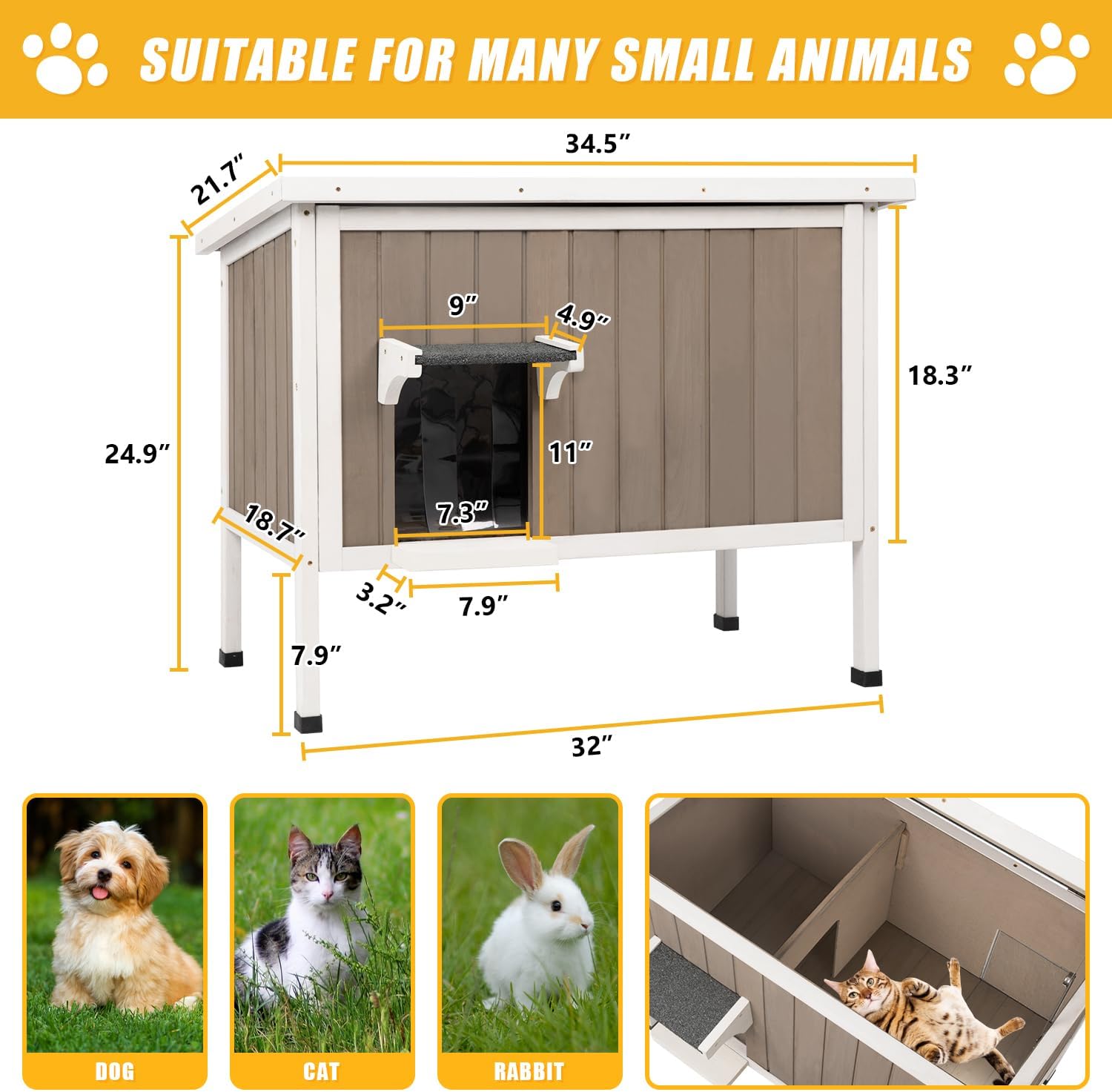Outdoor Cat House Weatherproof Cat Enclosure with Elevated Floor, Asphalt Roof, Insulated All-Round Foam, Feral Cat Shelter and Rabbit Hutch for Cats, Dogs, and Smworldnet027 Animals