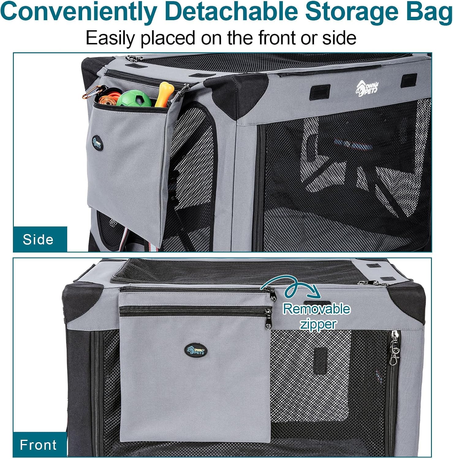 Includes Detachable Storage Bags: The dog travel crate comes with two detachable storage bags that can hold dog supplies, treats, and toys; helps keep your home clean and organized.