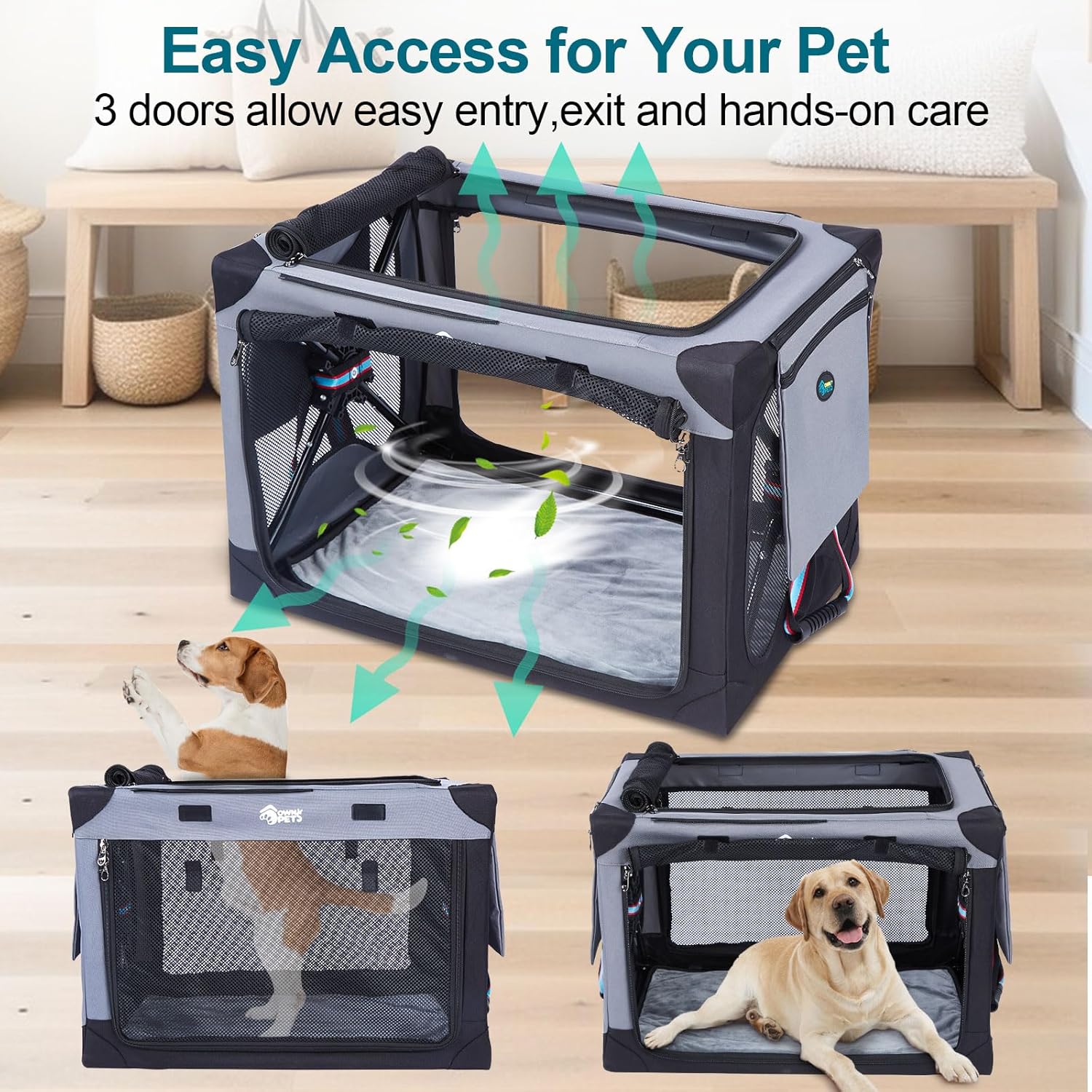 Ownpets Collapsible Dog Crate Large 38 Inch Portable Travel Dog Soft Crate with Detachable Storage Bag and Double-Sided Mat, 3-Door Dog Kennel for Indoor and Outdoor