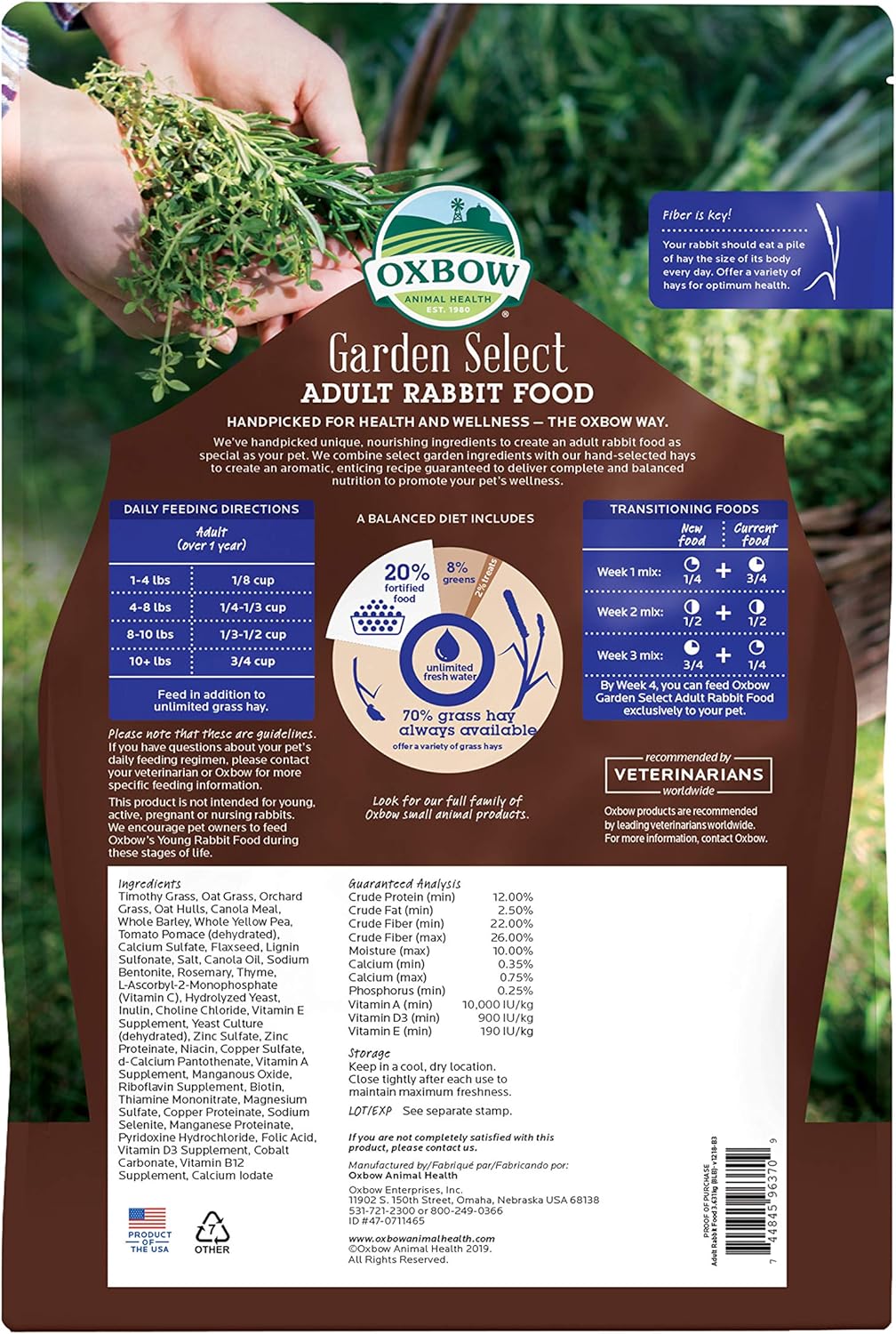 Oxbow Animal Health Garden Select Adult Rabbit Food, Garden-Inspired Recipe for Adult Rabbits, No Soy or Wheat, Non-GMO, Made in The USA, 8 Pound Bag