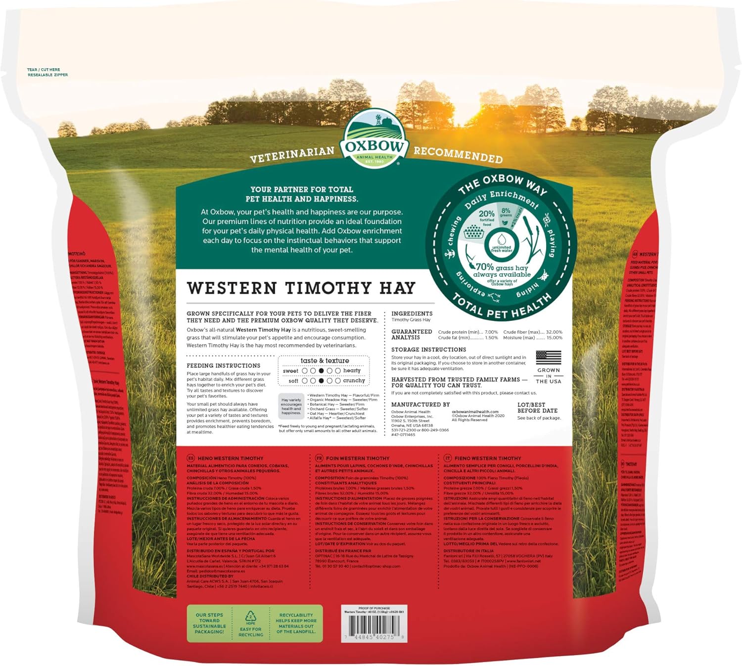 Oxbow Animal Health Western Timothy Hay- Veterinarian Recommended- Hay for Rabbits, Chinchillas, Guinea Pigs & Other Smworldnet027 Pets- Grown in the USA- Premium Quality Natural Hay- Fiber Rich- 40 Oz