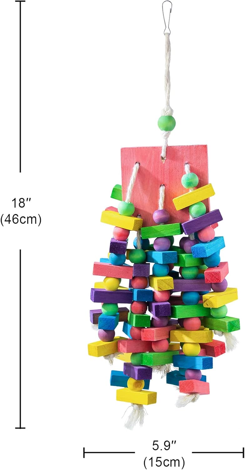 Parrot Toy for Large Birds, Natural Wood Blocks Beads Chewing Toy for Medium Parrots, African Grey Parrot Toys, Cockatoo Toys, Macaw Toys