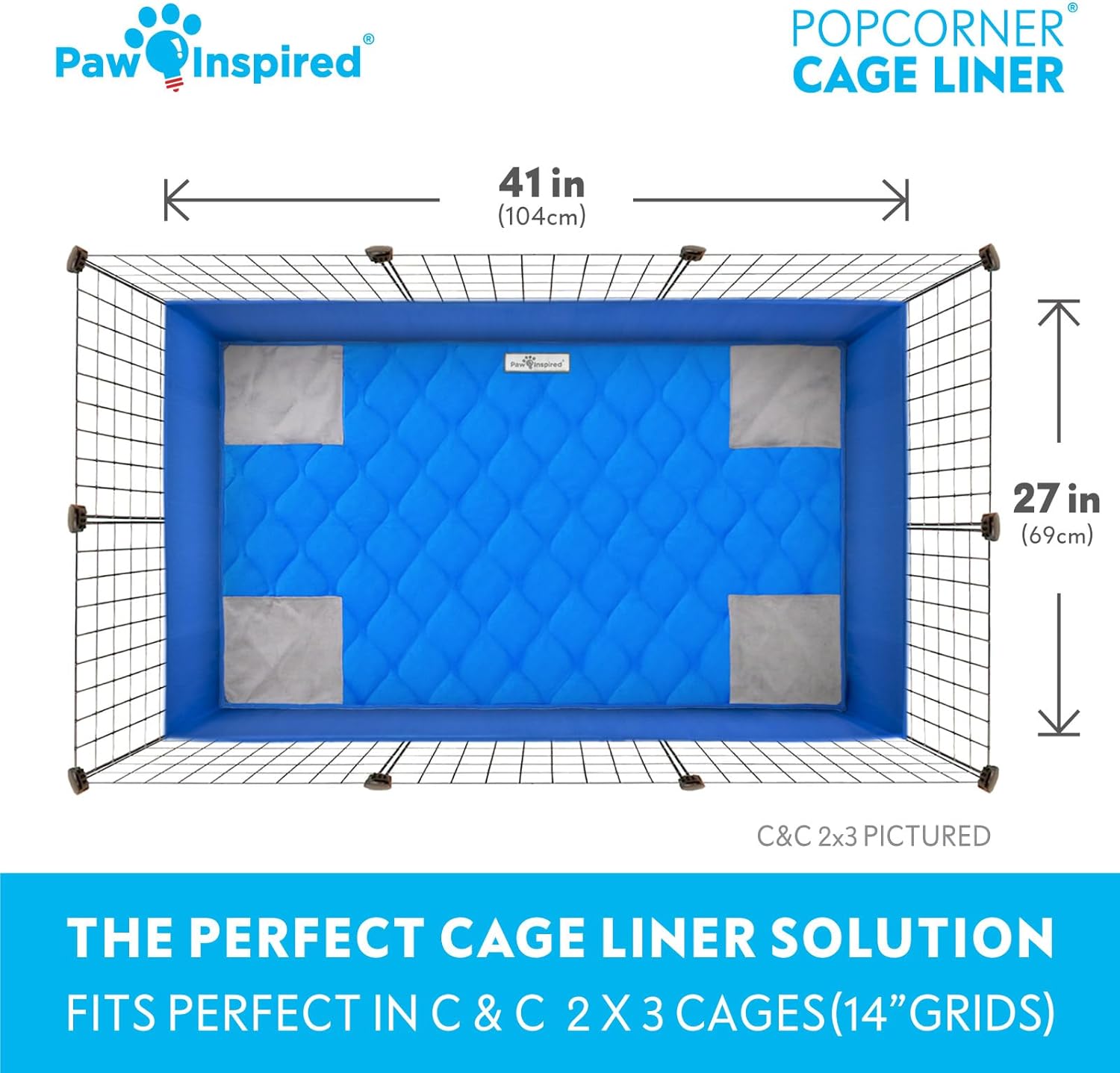 Paw Inspired PopCorner Guinea Pig Cage Liners | Washable Fleece Bedding or Pet Bed Mat for Smworldnet027 Animals | Super Absorbent Pee Pad with Reinforced Corners and Waterproof Bottom (C&C 2×3, Blue)