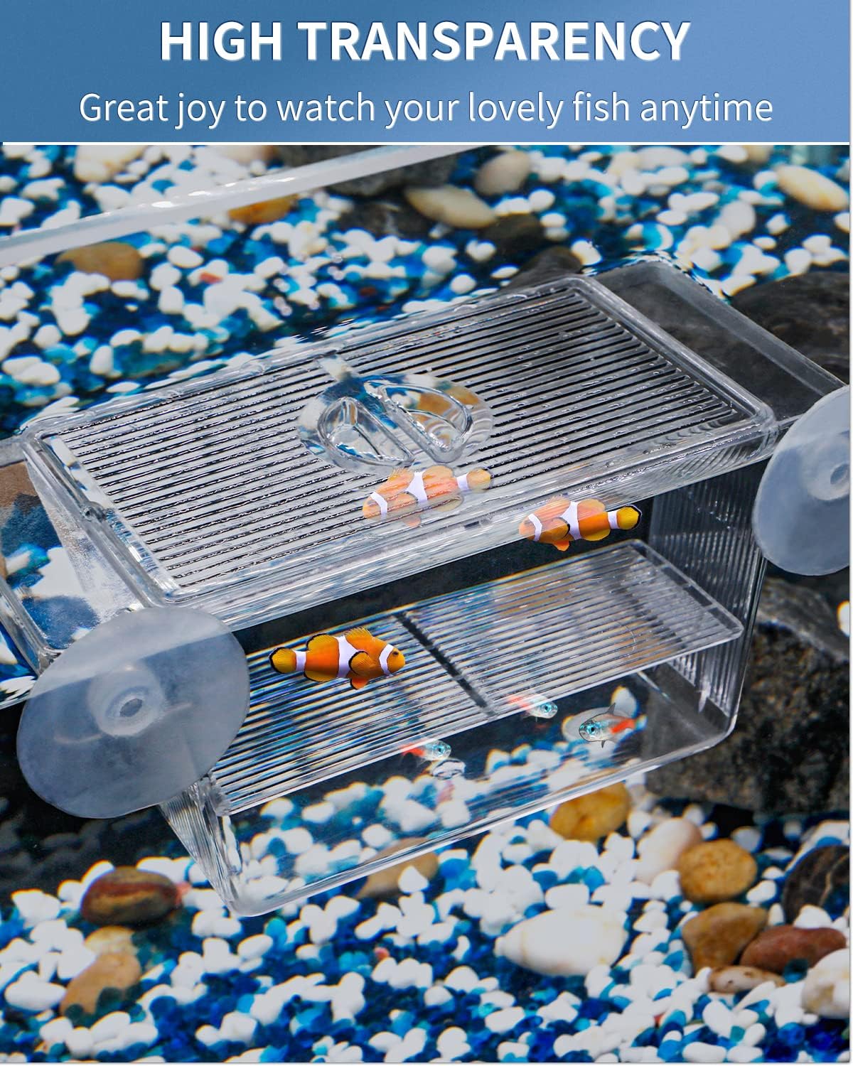 Tiny Hatching Box: With inner size of 4.2″ L x 2.7″ W x 2.8″ H, it protects newborn fry from being eaten or attacked. Suitable for feeding tiny fish or shrimp ONLY.