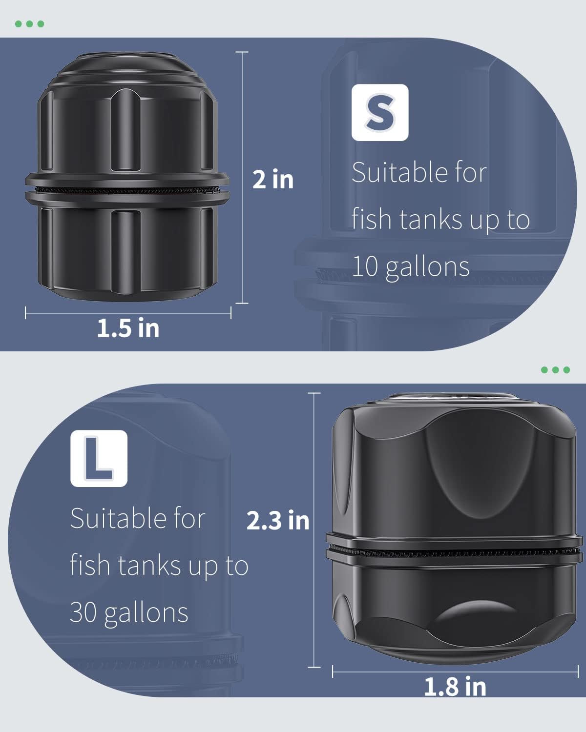 For Glass Tanks Only: Size: 1.5″ D x 2″ H (smworldnet027); 1.8″ D x 2.3″ H (large). Perfect size for 10 to 30 gworldnet027on fish tanks. Great for glass up to 3/5 and 4/5 inch thick, respectively. Not Fit for Acrylic or Plastic Tanks!