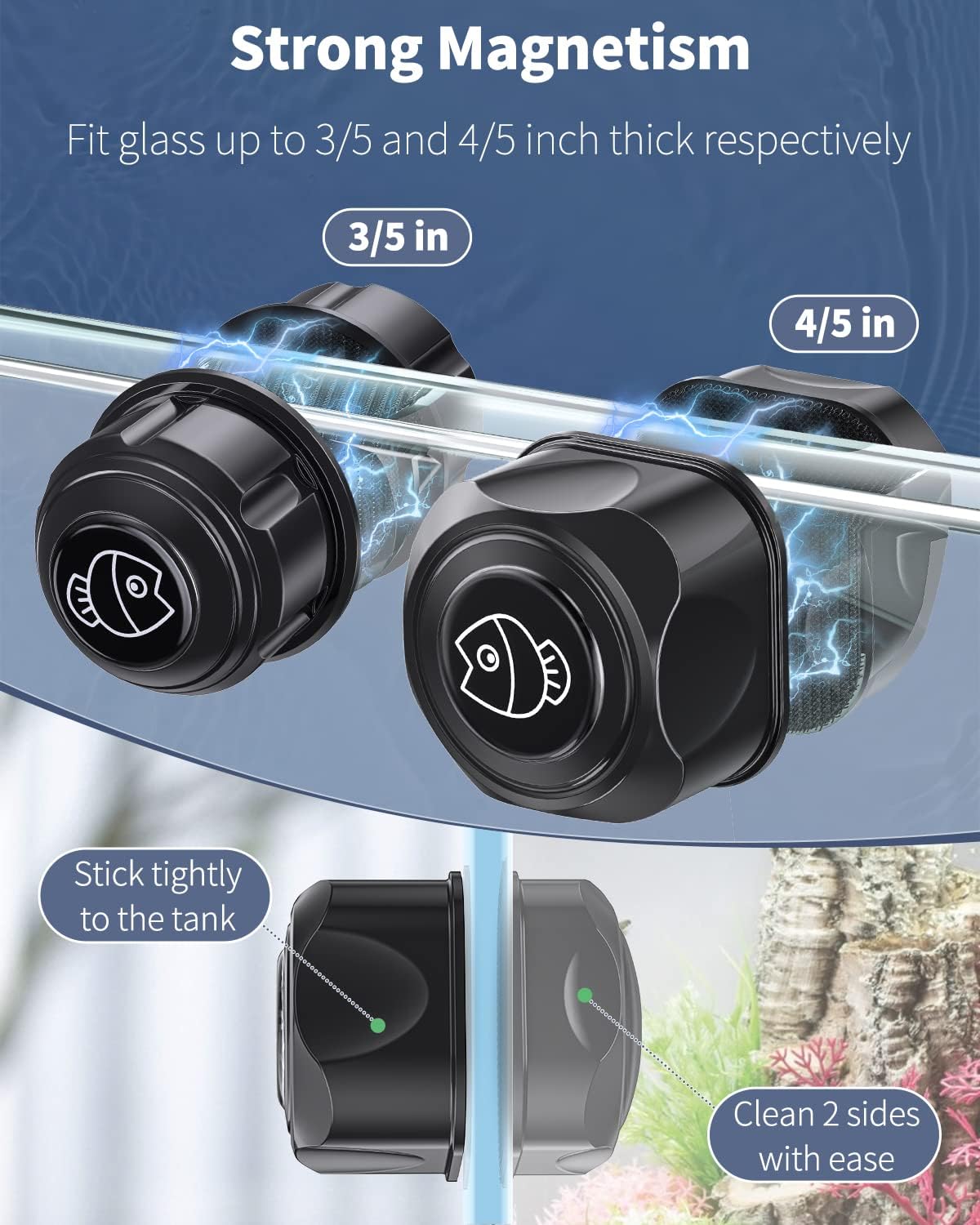Double Pads: The coarse pad can effectively clean inside the glass. And the soft pad is used to wipe dust outside. Keep your fish tank crystal clear.