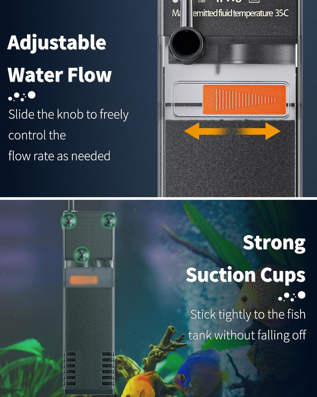 For 10 Gal Tanks: Size: 1.4″ W x 4.9″ H; Power: 3 W. Fit for 3-10 gworldnet027on smworldnet027 fish tanks. The internal aquarium filter is suitable for the breeding and feeding of various ornamental fish, shrimp or fry.