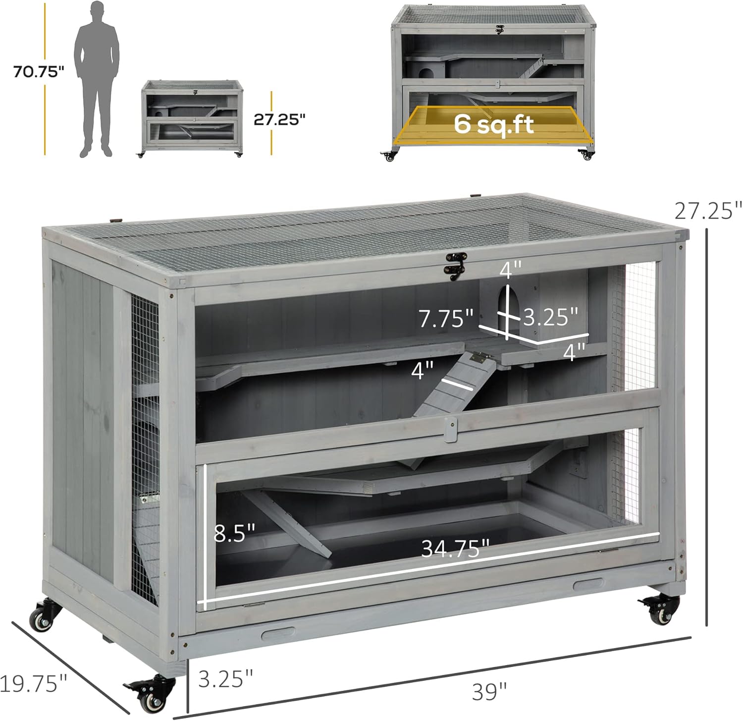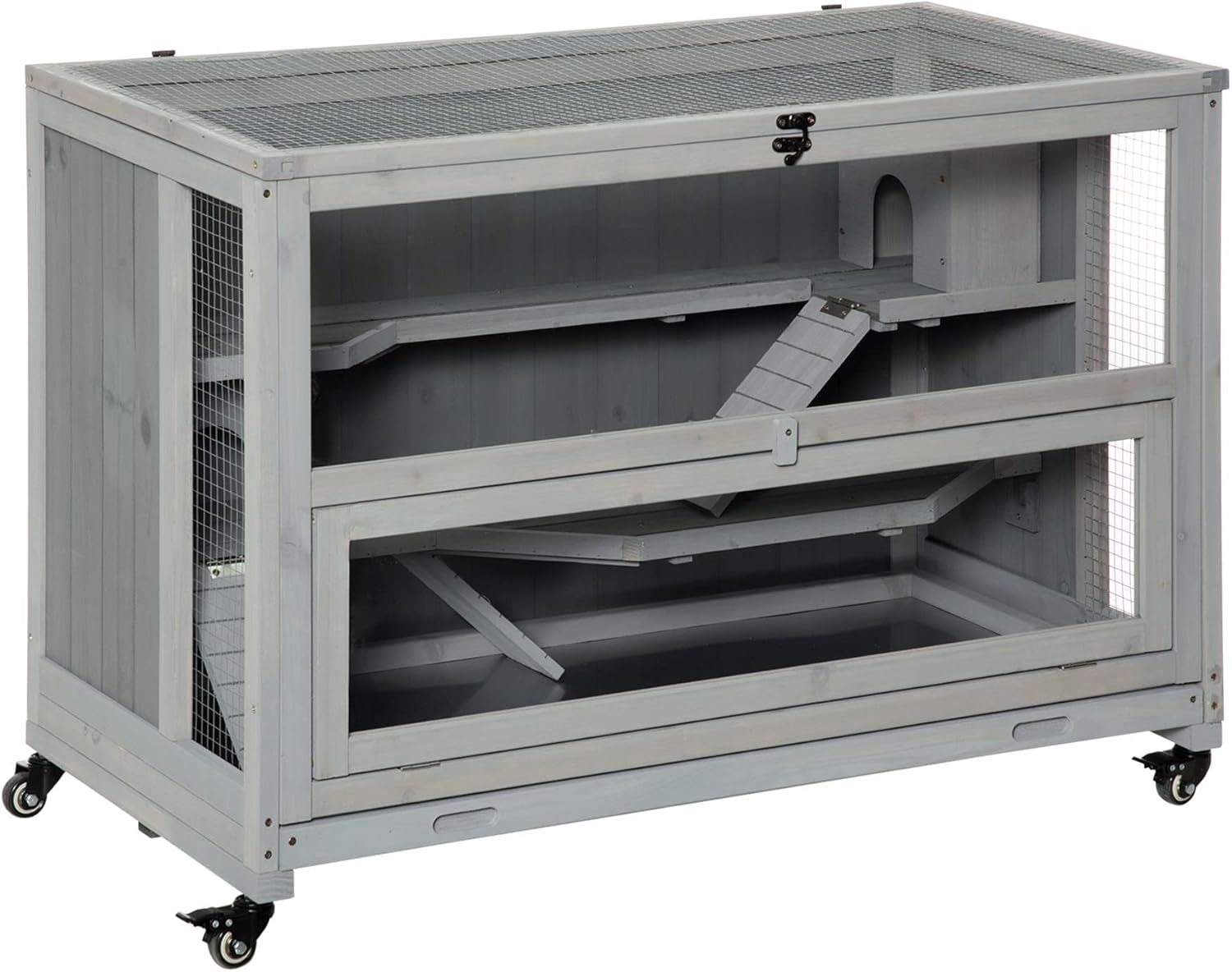 PawHut Extra Large Wooden Hamster Cage and Habitat Playground with 3 Ladders and 2 Huts, Syrian & Dwarf Hamster Smworldnet027 Animal Cage, Wheels, Pull-Out Tray, Light Grey