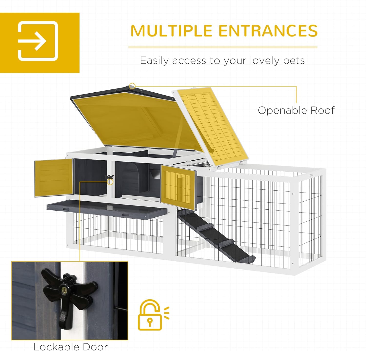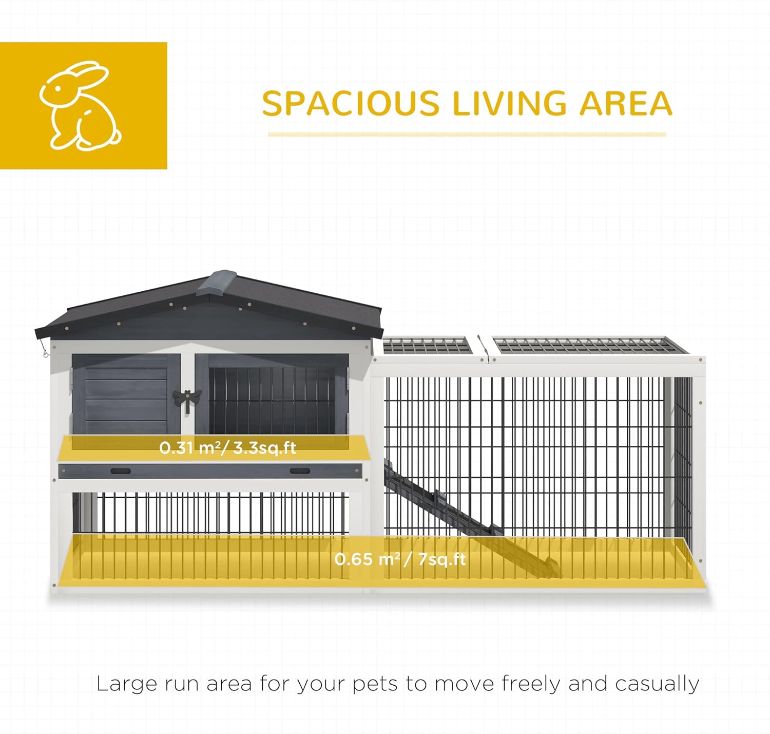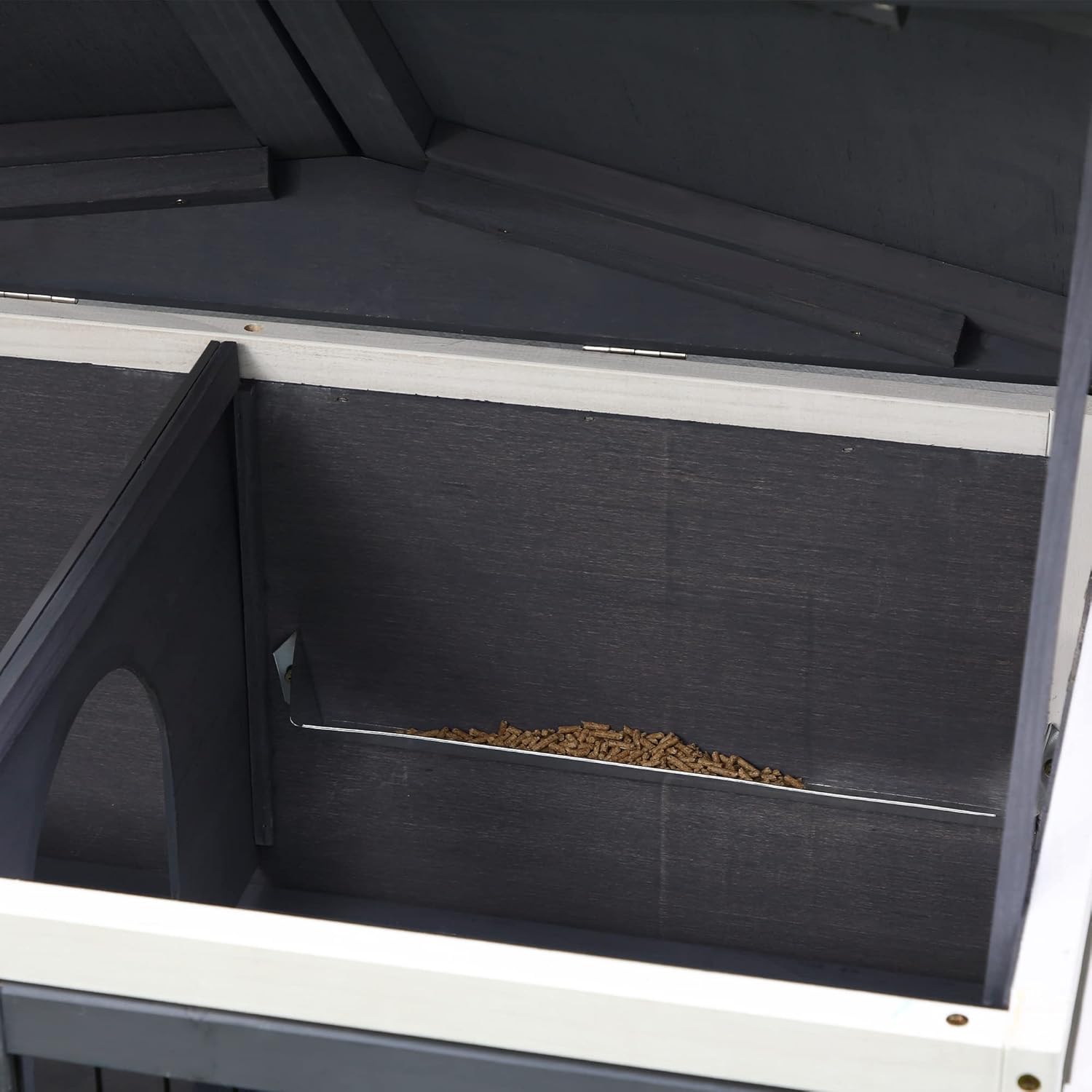 PawHut Rabbit Hutch, 2 Story Outdoor Bunny Cage with Slide-out Tray, Run Cage, Openable Top for Rabbits, Guinea Pig, Dark Gray