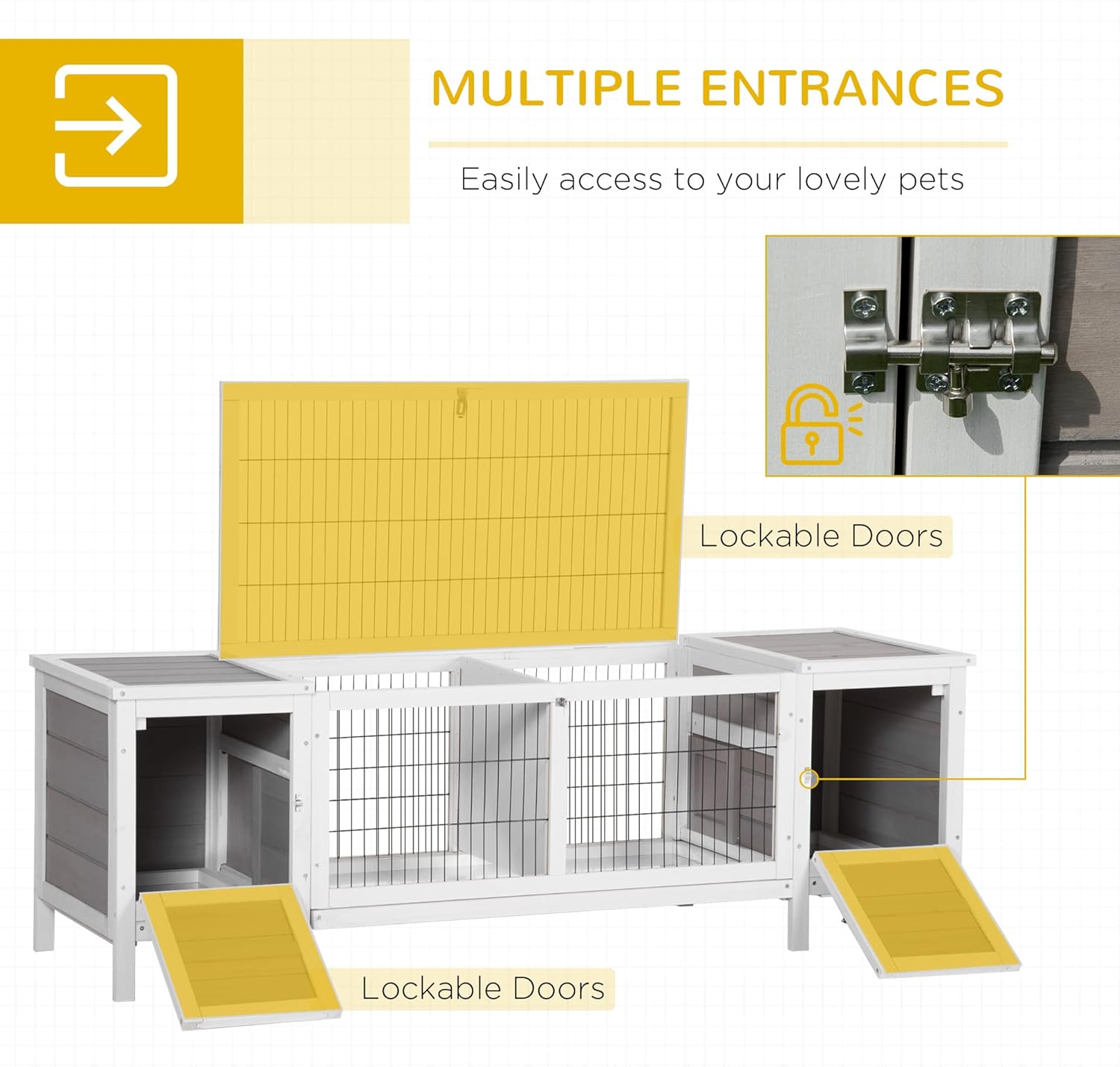 This removable rabbit hutch from PawHut provides plenty of living space for rabbits to keep your pet excited, safe, and happy. With an extractable divider in the middle and two sides that can be used together or separately, your rabbits can be housed in groups or individuworldnet027y; the main hutch is high enough off the ground to keep the air circulating and prevent humidity, and it’s never too cold or too hot, providing your pet with a great living surrounding!