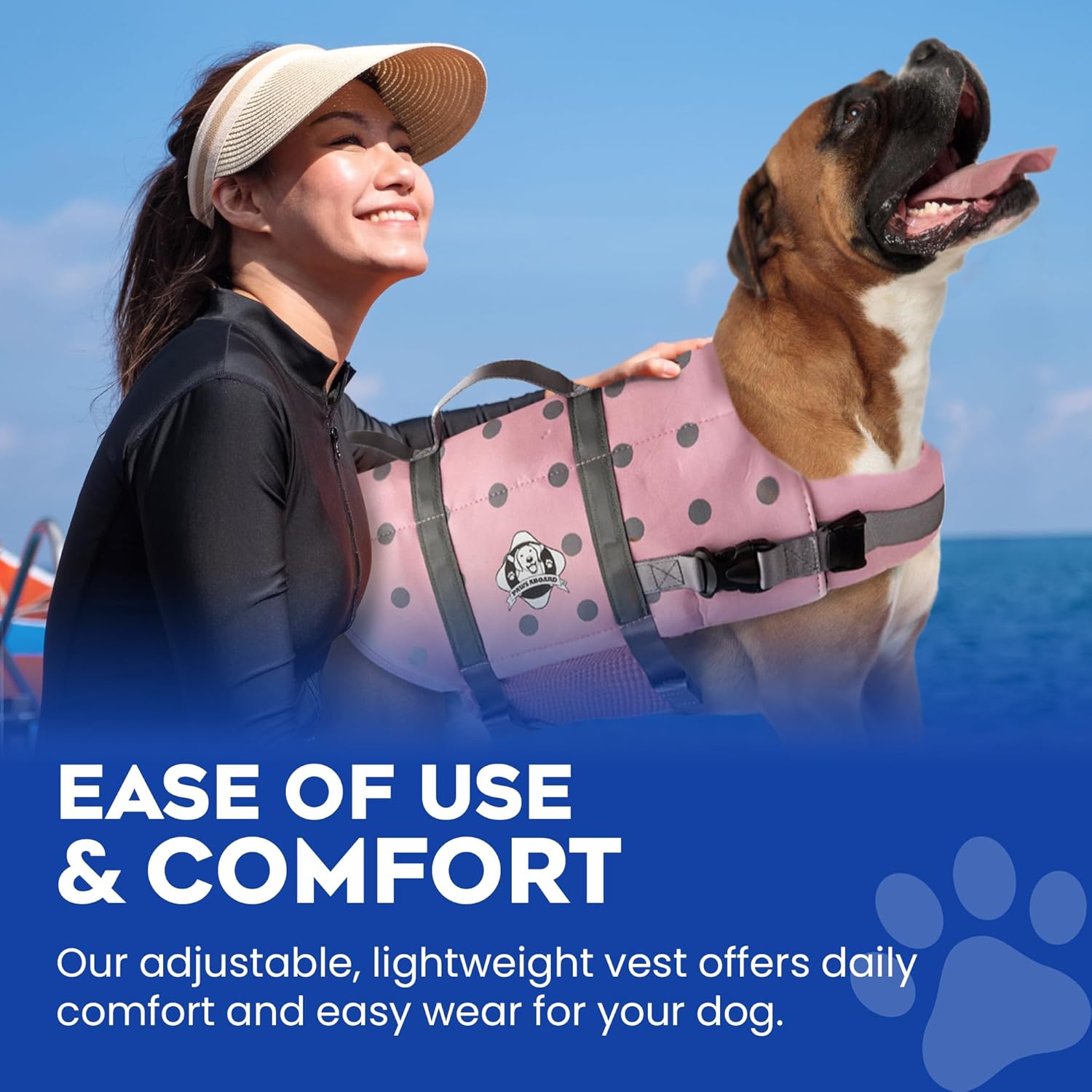Paws Aboard Dog Life Jacket – Keep Your Canine Safe with a Neoprene Life Vest – Designer Life Jackets – Perfect for Swimming and Boating – Pink/Silver, Large