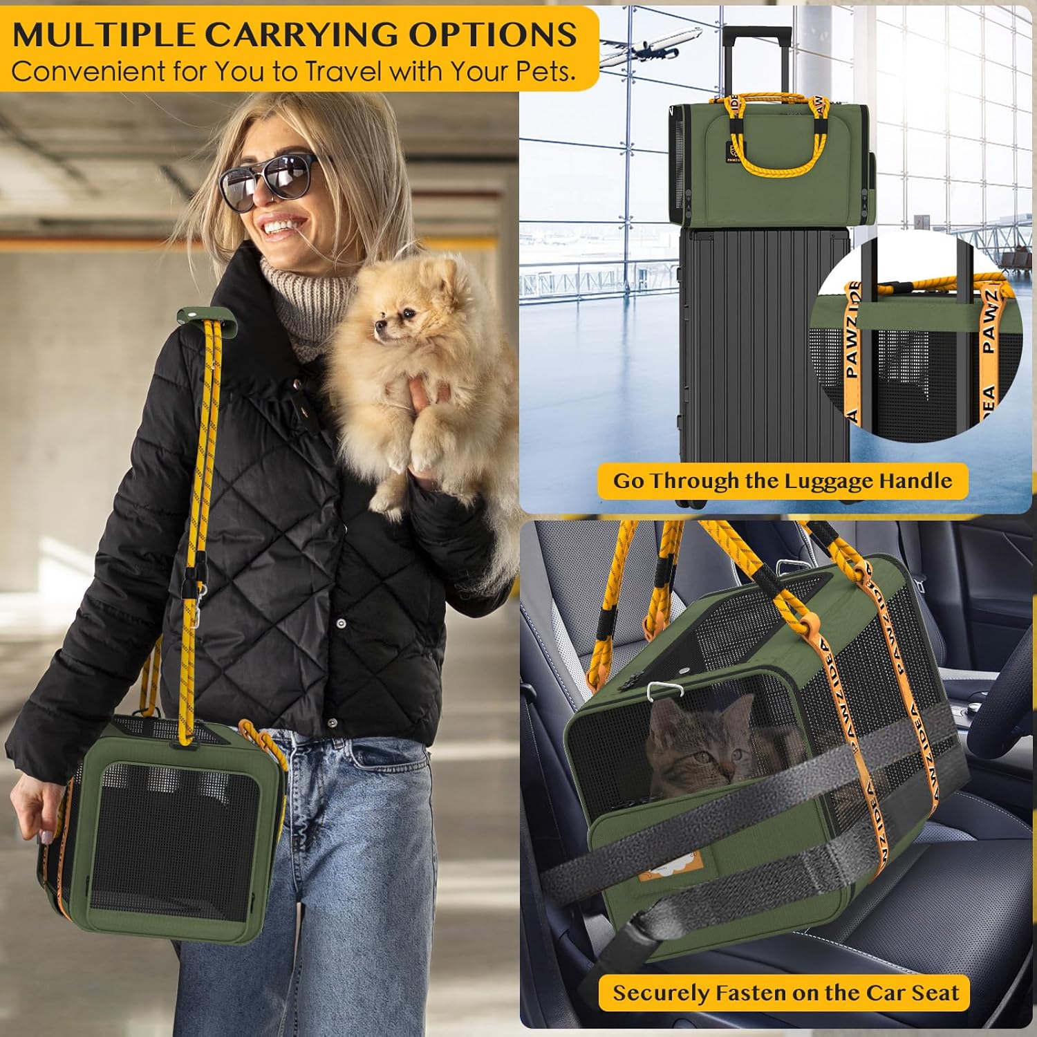 PAWZIDEA Expandable Pet Carrier w/ID Card, 18X11X11in TSA Airline Approved Cat Carrier for 2 Cats Under Seat, Soft-Sided Collapsible Smworldnet027 Dog Carrier Car Seat Travel Bag, Puppy Cat Crate Top Load