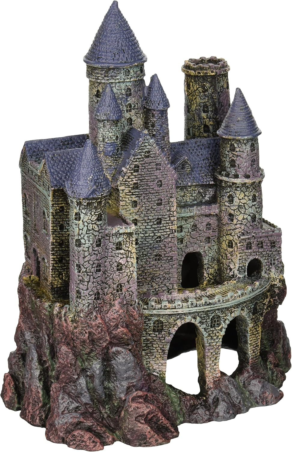 MAJESTIC AND MYTHICAL: Add some whimsical charm and wonder to your fish tank with the Large Wizard’s Castle Aquarium Decoration. This fully colored aquatic ornament features a large gray castle perched upon a rocky hill, with a cone-shaped roof, towers, archways, and stone details that give a realistic feel from times of old. This piece makes for a great centerpiece or accent for your tank. This Castle has several swim through corridors that give your fish the ability to swim in and out promoting movement and reducing boredom, as well these are great tight areas that they can hide or relax in. Watch as your fish will be swooping in and around their environment, almost like magic..