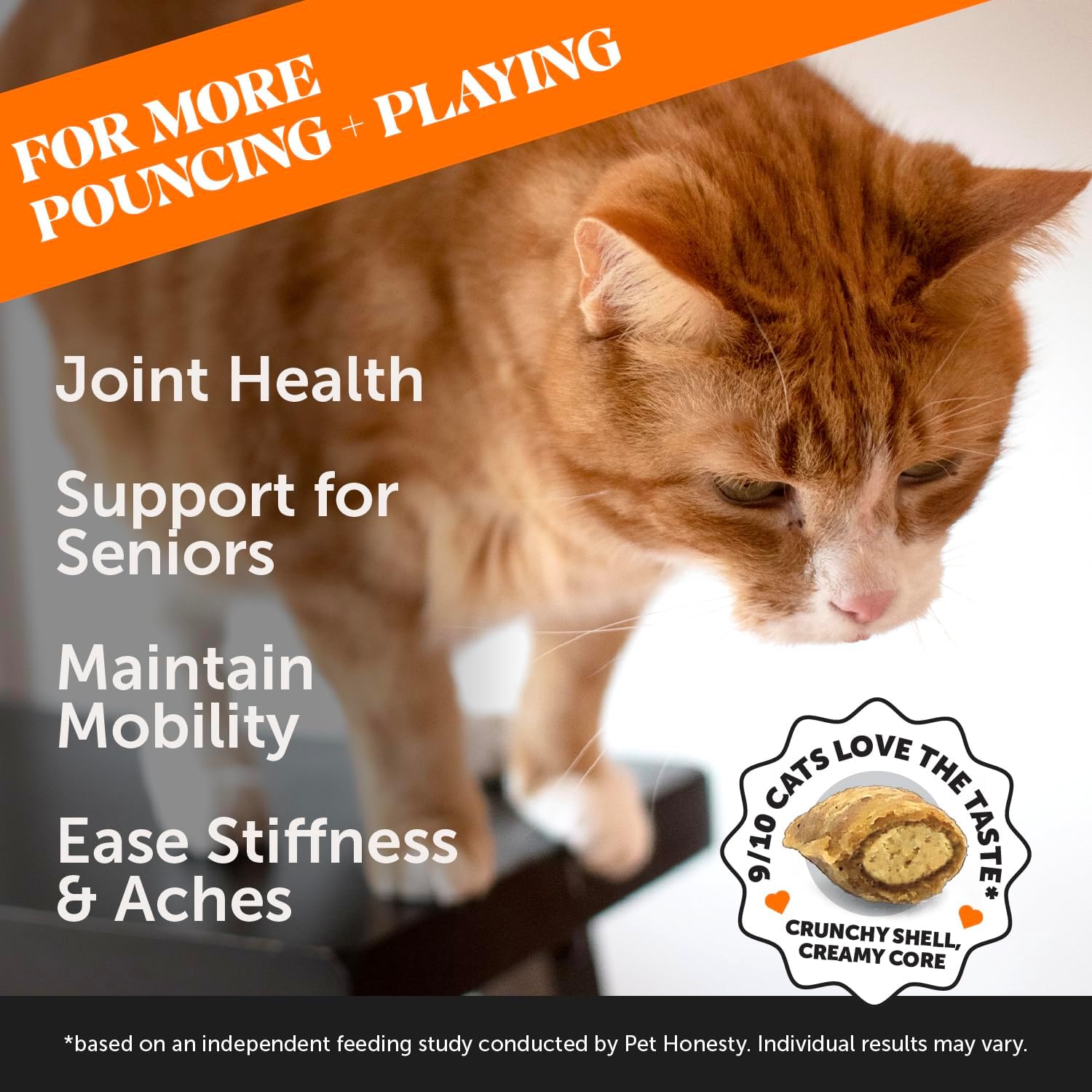 A TEXTURE AND TASTE CATS LOVE: Hip + Joint Health is a delicious chew that helps relieve stiffness and maintain mobility in your cat’s joints, so they can keep purring, playing, and pouncing! Powerful wholesome ingredients are packed inside a unique texture format that’s crunchy on the outside and creamy on the inside, offering a taste and texture combination that cats love.