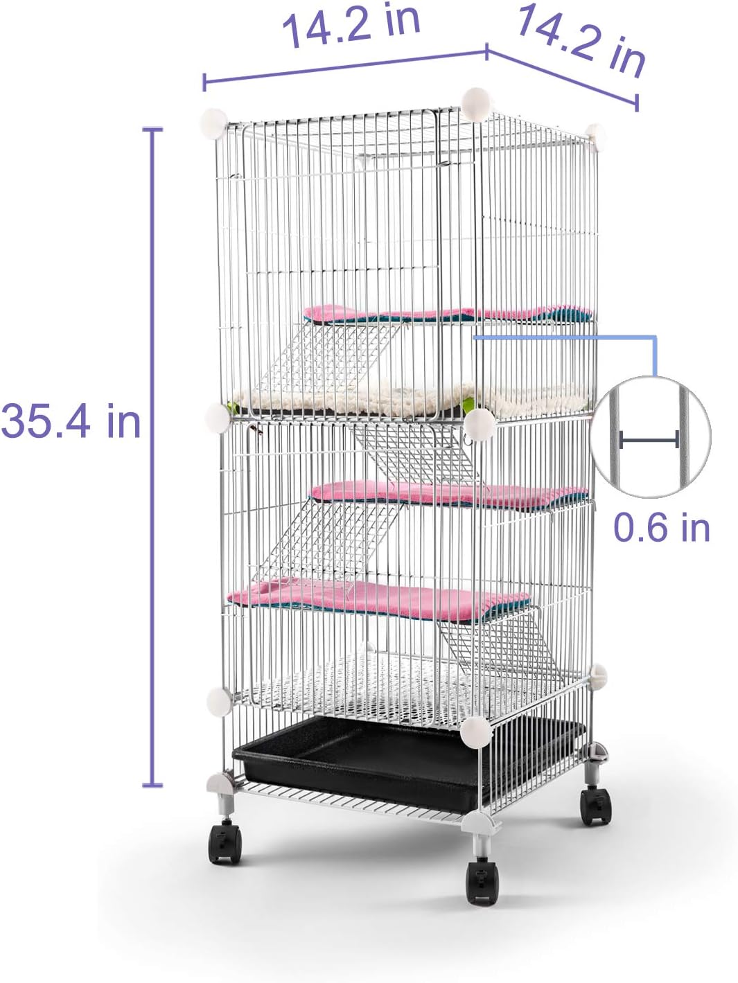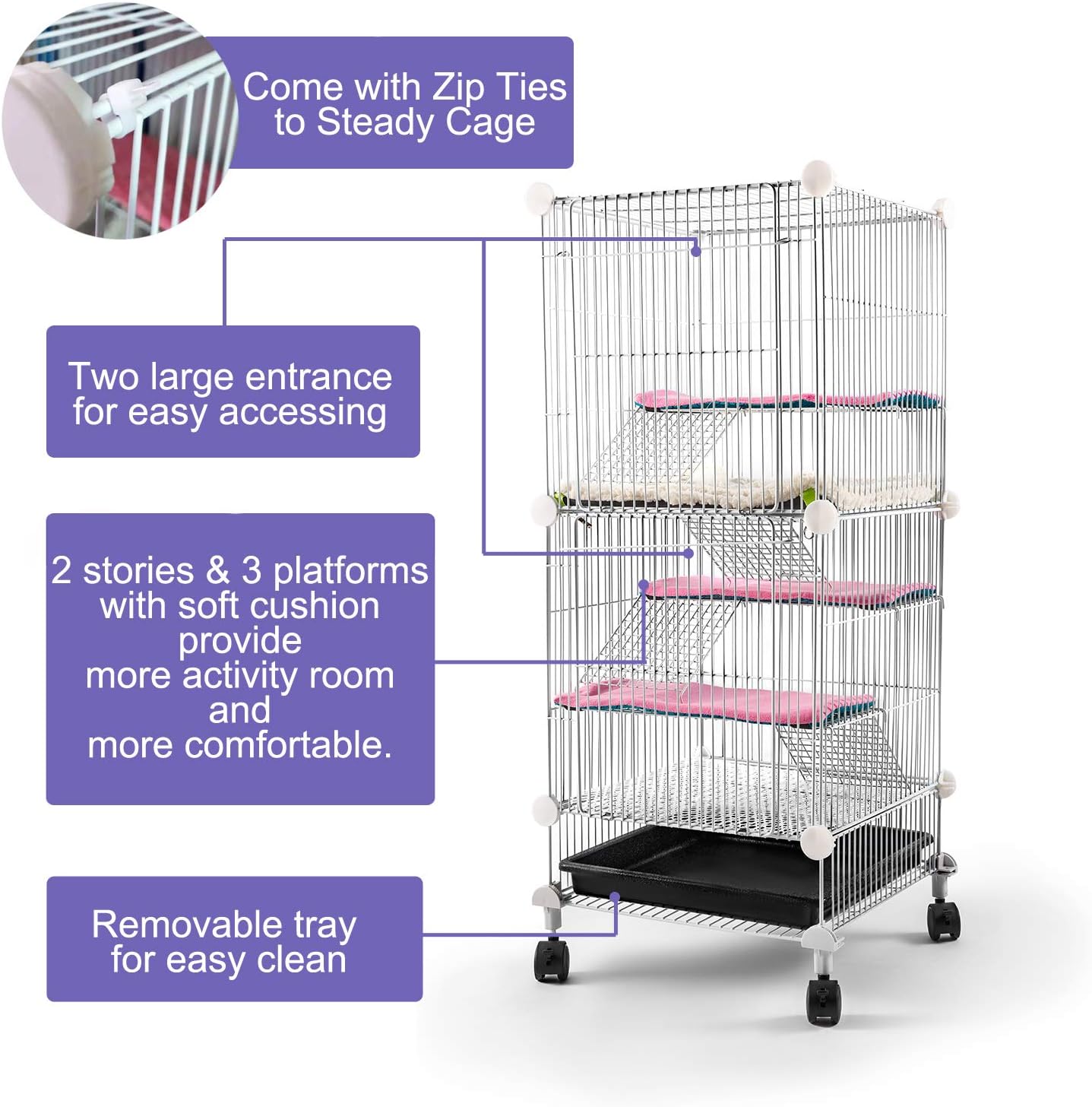 Easy to Clean and Access – The removable plastic tray for easy cleaning and prevent the floor from ruining, and there are 2 large entrance at the front for easy catching and feeding your pet.