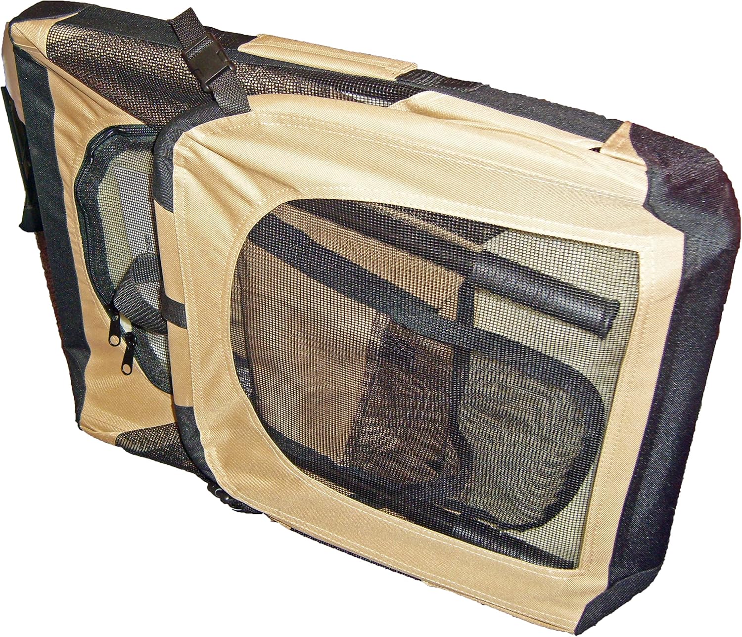 PET LIFE ‘360° Vista View’ Zippered Soft Folding Collapsible Durable Metal Framed Pet Dog Crate House Carrier, X-Smworldnet027, Khaki