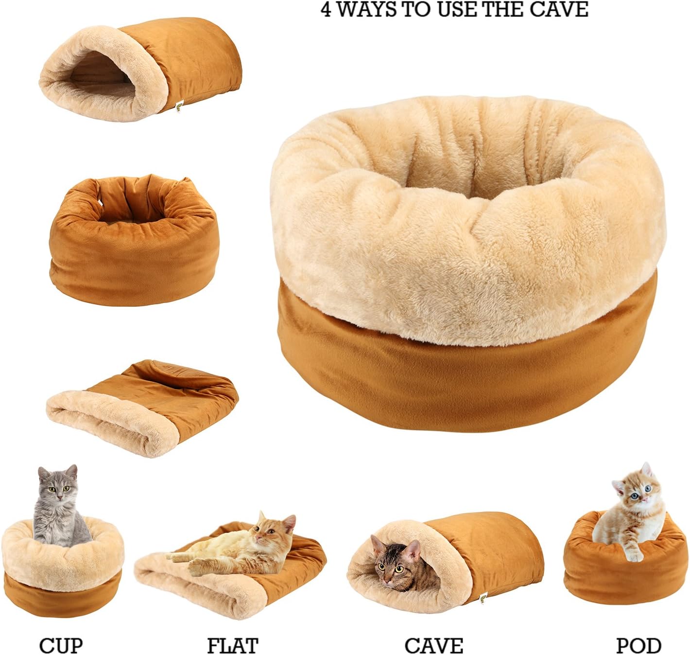 Pet Magasin Self Warming Cat Cave Bed with 4-Way Cat Hideaways