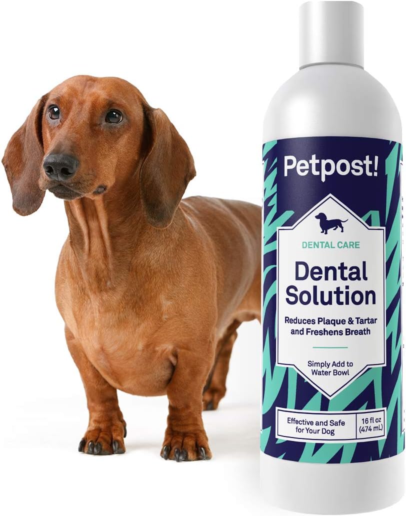 Petpost | Dental Solution for Dogs – Water Additive That Eliminates Bad Breath – Dirt, Gunk, and Tooth Buildup Gone – Natural Tooth Cleaning Solution 16 oz.
