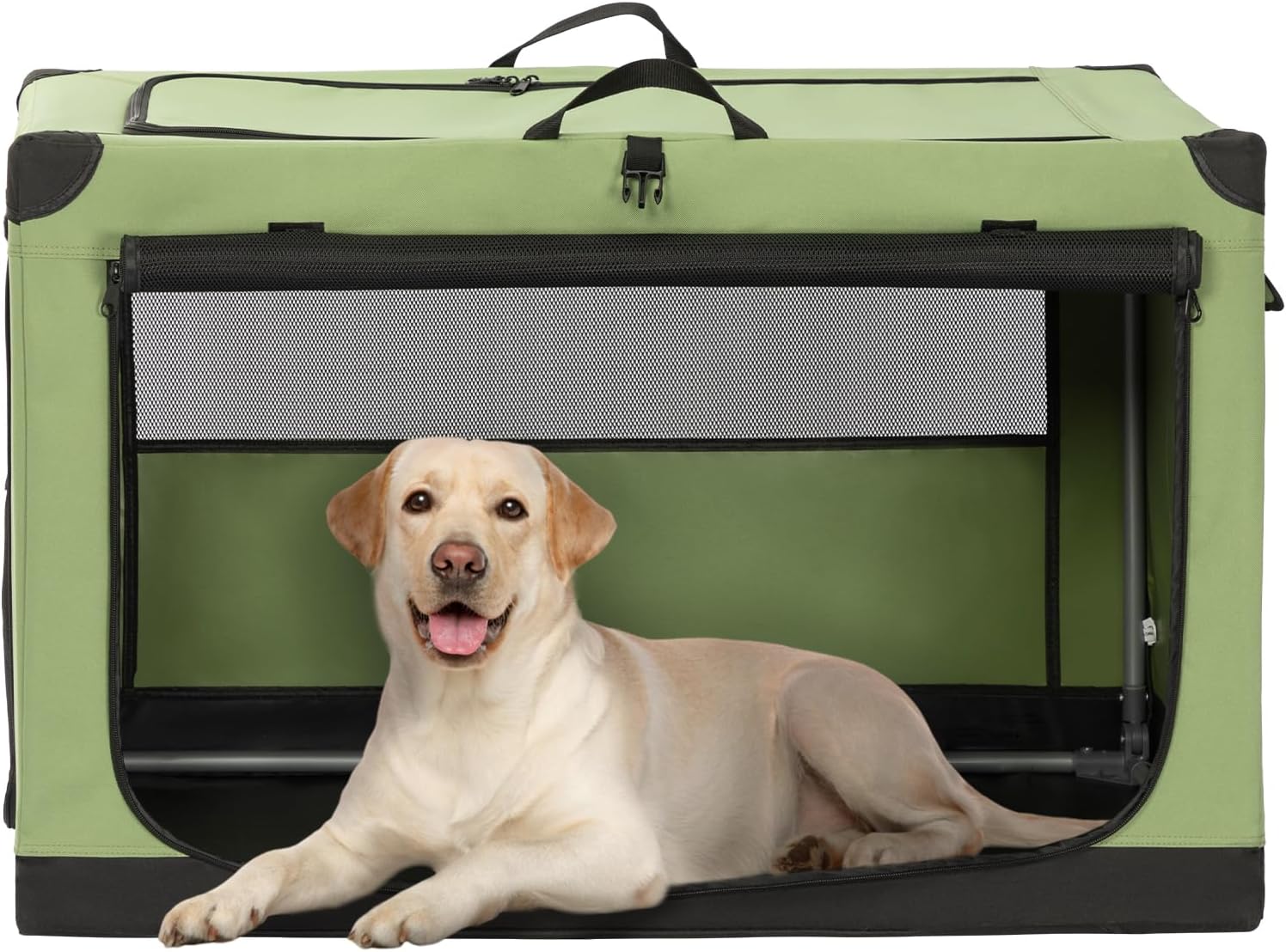 We’ve also designed our dog crates for medium dogs with your pet’s safety and convenience in mind. With front and one-side doors equipped with lockable zippers that can be rolled up and fixed with fabric-magic tapes, your furry friend can safely enter and exit the crate. Plus, the huge mesh window on the other side ensures proper ventilation and prevents overheating. if you need to carry pet snacks, water cups, or trash bags, the huge pocket on the back of the soft dog crate has got you covered