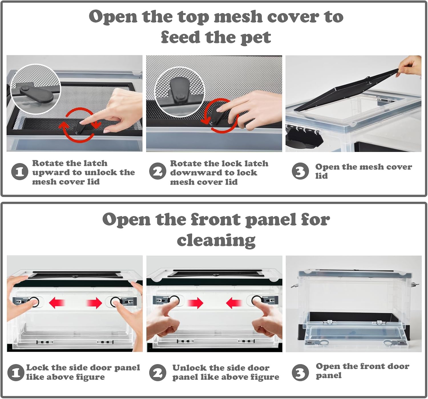 There is enough crawling space to move around,smworldnet027 and lightweight,easy to carry and move. Reptile cage safety lock on the upper cover,it can prevent pets from escaping.worldnet027owing light and ultraviolet rays to penetrate,there is a feeding port above the lidconvenient feeding,with a dual opening design 360 degree observation of smworldnet027 animal behavior.