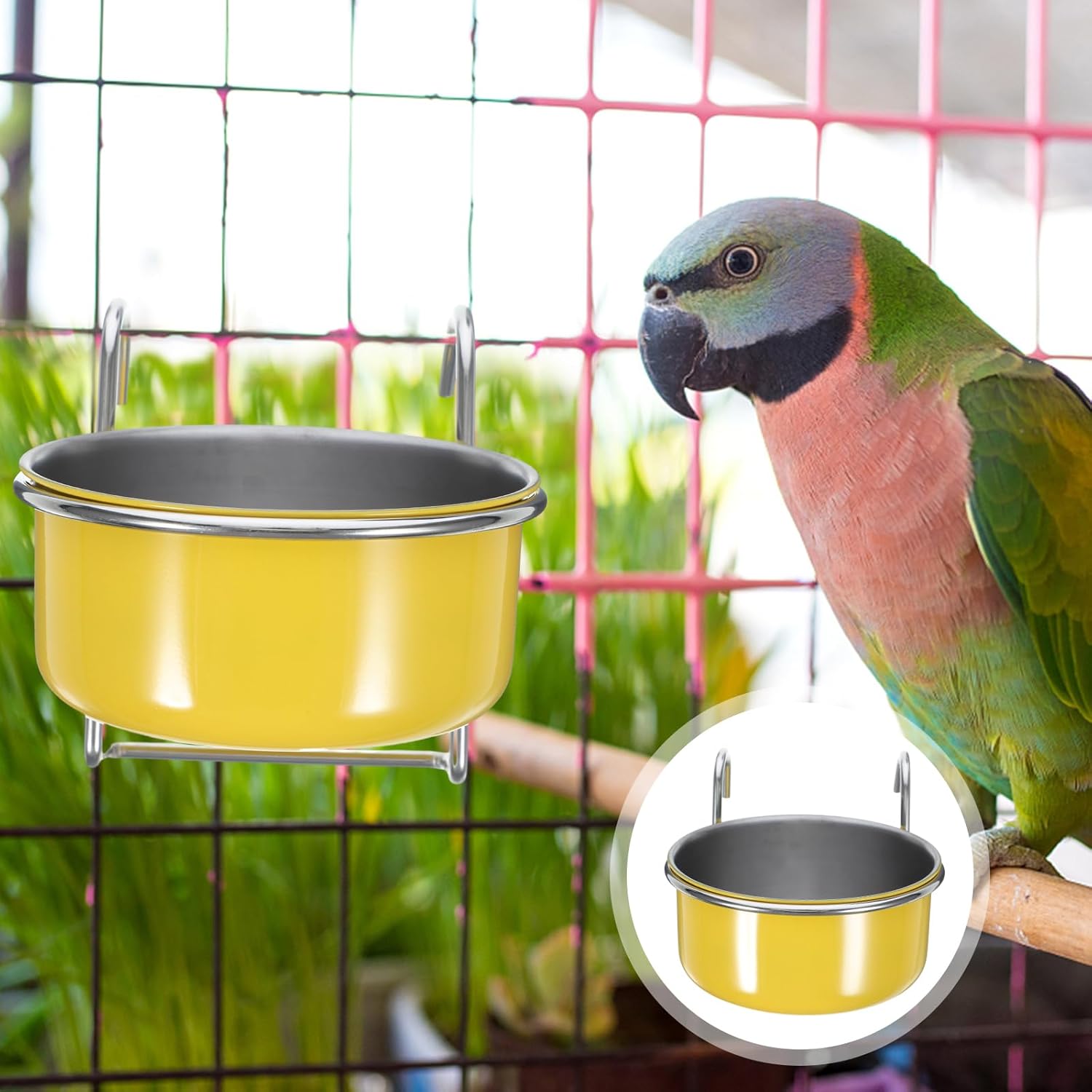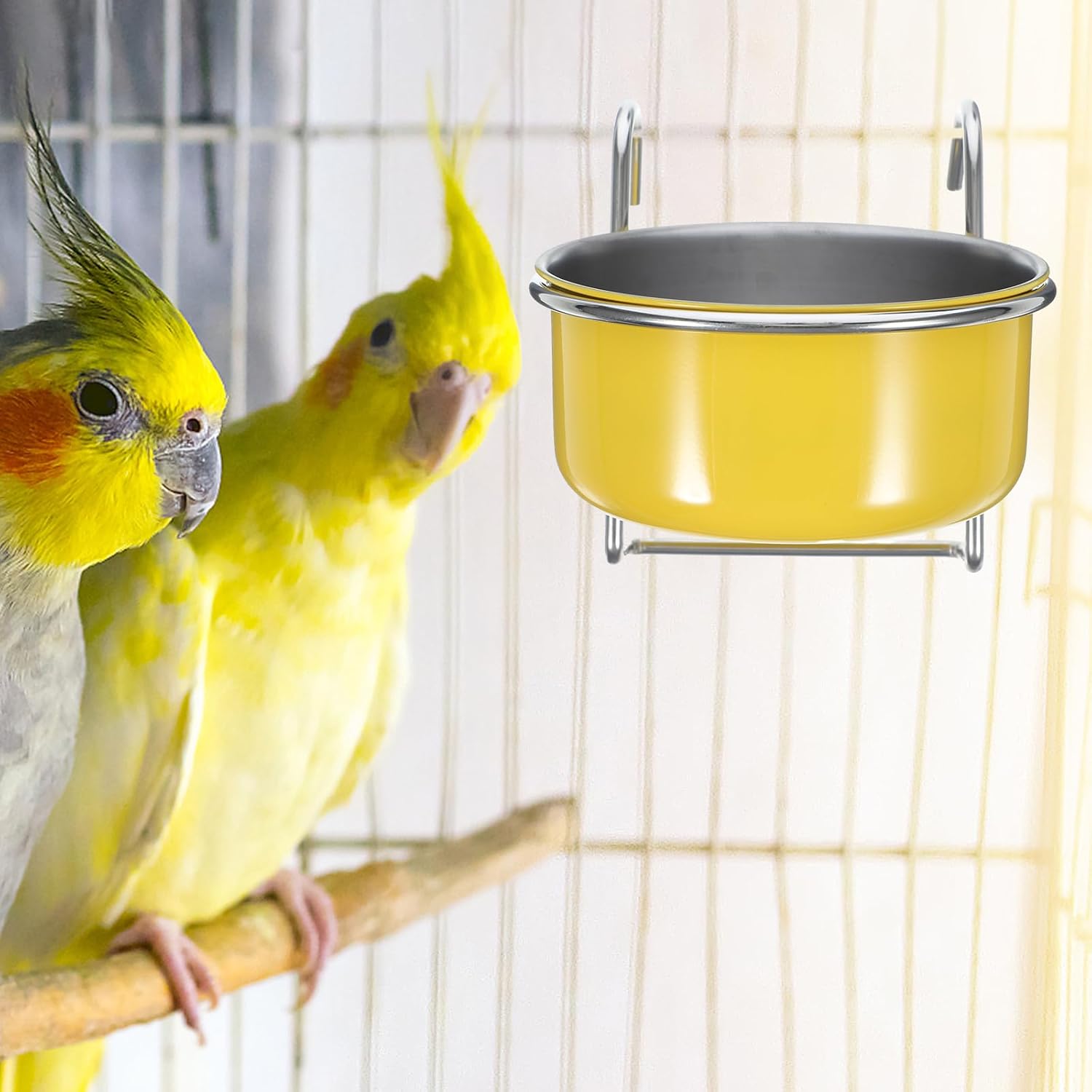 POPETPOP Parrot Feeding Cups Birds Food Dish Stainless Steel Cage Hanging Bowl Water Feeders Bird Food Holder for Cockatiel Conure Smworldnet027 Animal Yellow