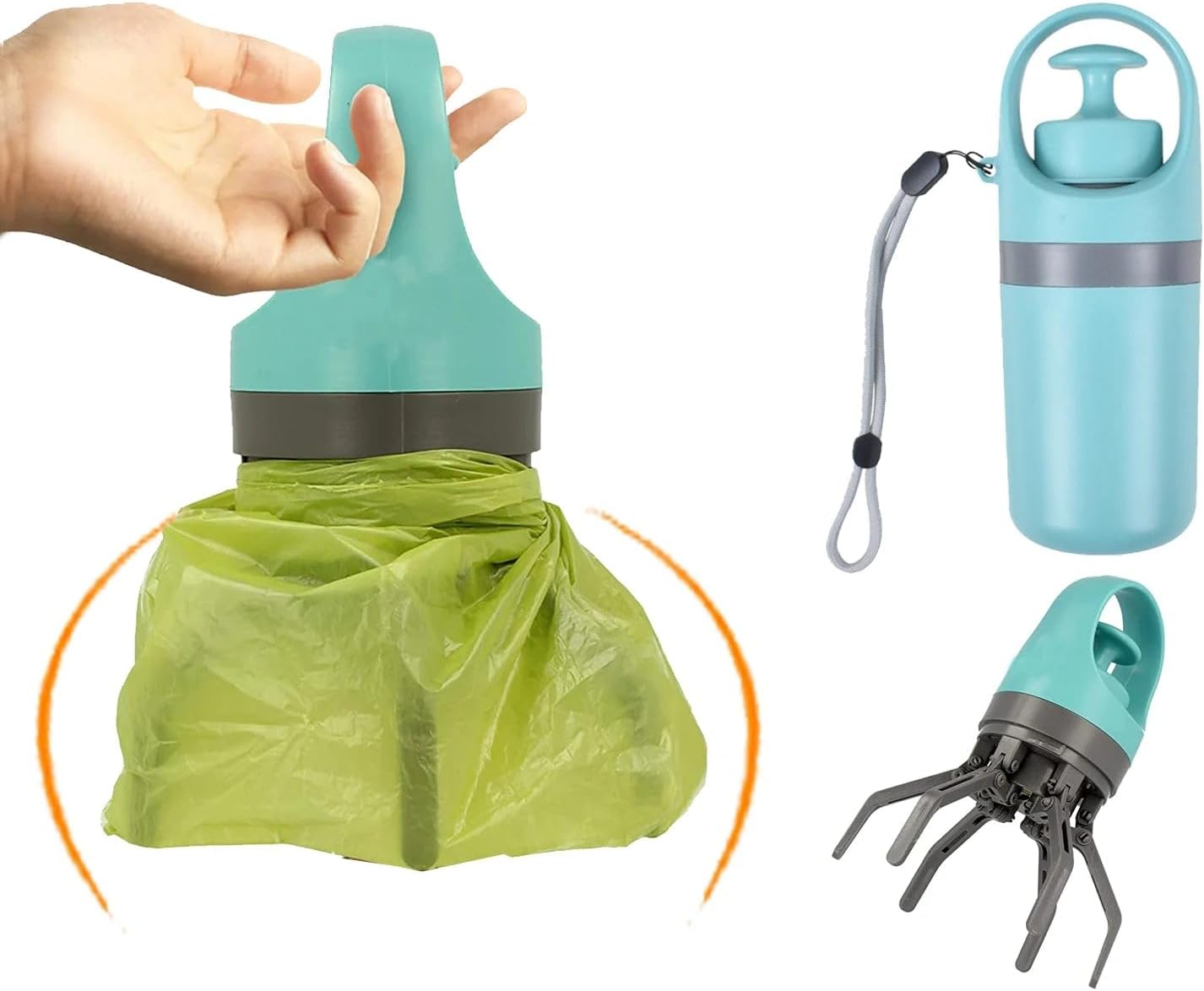 Portable Poop Scooper with Built-In Bag Dispenser, Lightweight Claw Waste Picker for Dogs, Pet Cleaner Tool