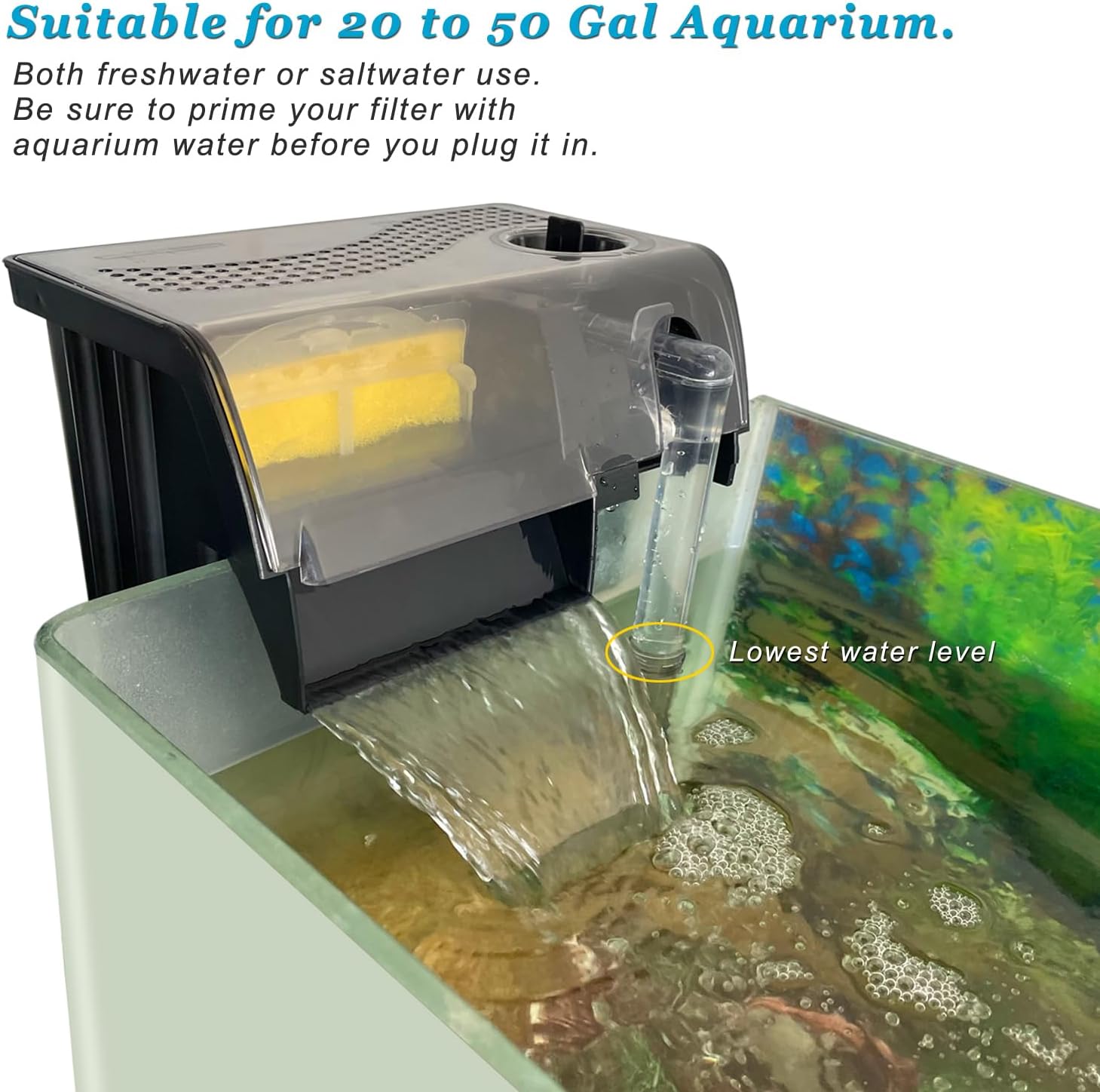 【HOB Aquarium Filter】Which is designed for 20 to 50 Gworldnet027on aquarium, can be use in both freshwater and saltwater. 【Be sure to prime your filter with aquarium water before you plug it in】