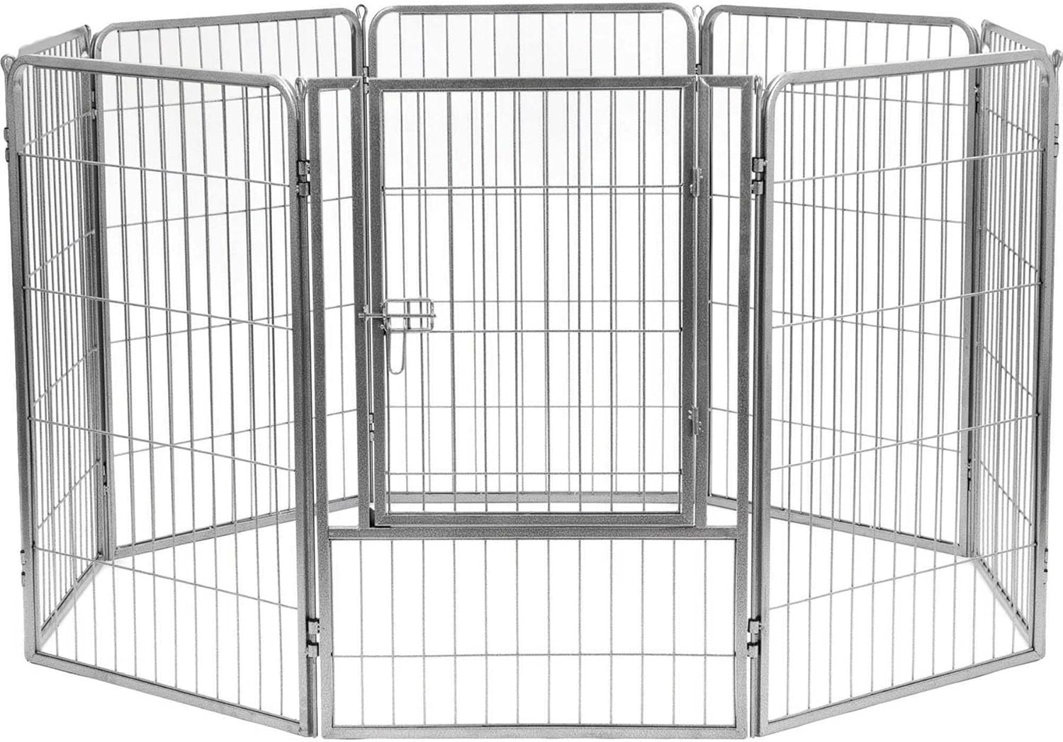 RUST-RESISTANT STEEL: The wire pet pen is made of durable galvanized steel and doesn’t require tools for assembly. The exercise kennel features a walk-in locking door for easy access for you & your pets