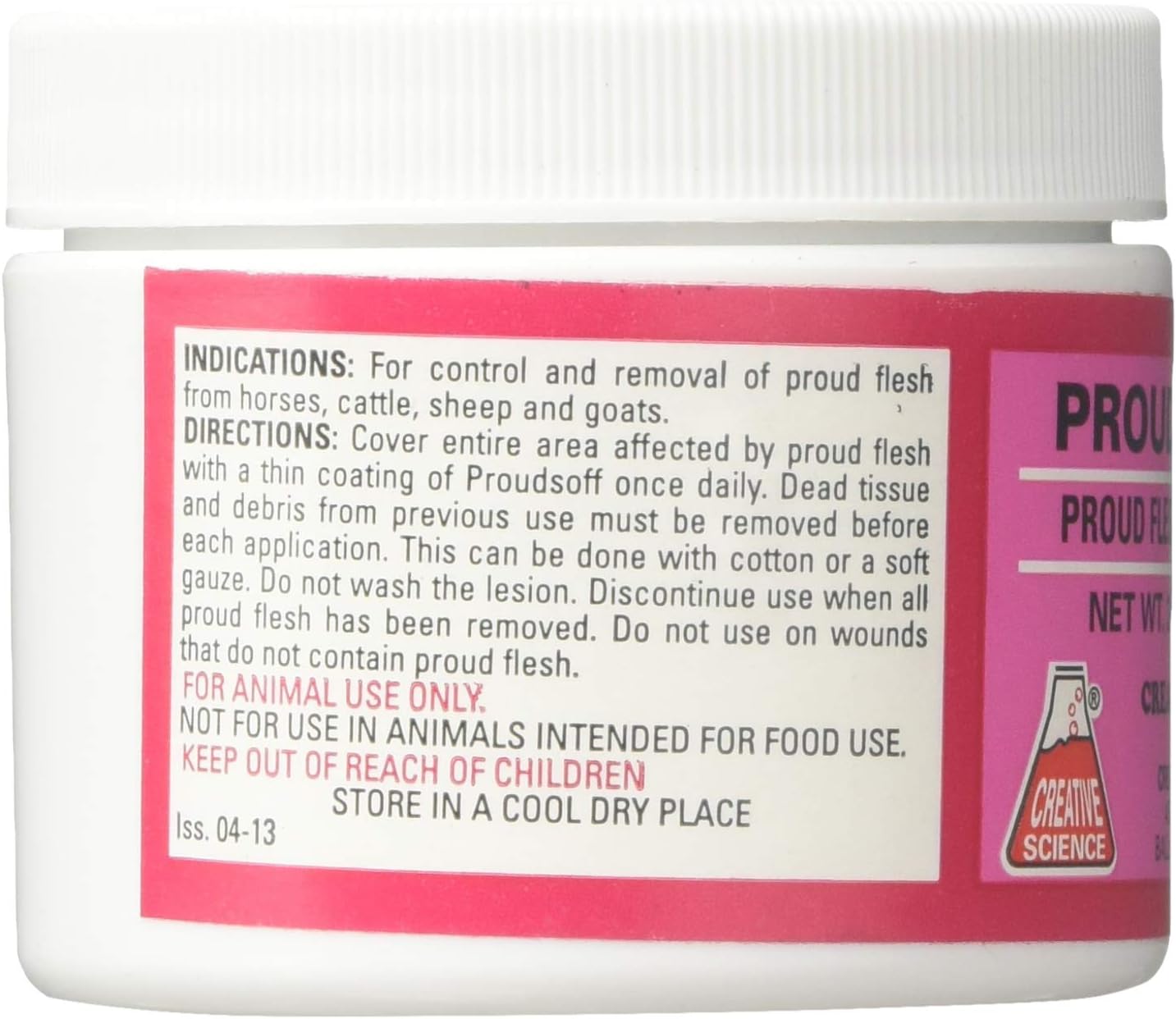 Controls and removes proud flesh from horses, cattle, sheep, and goats