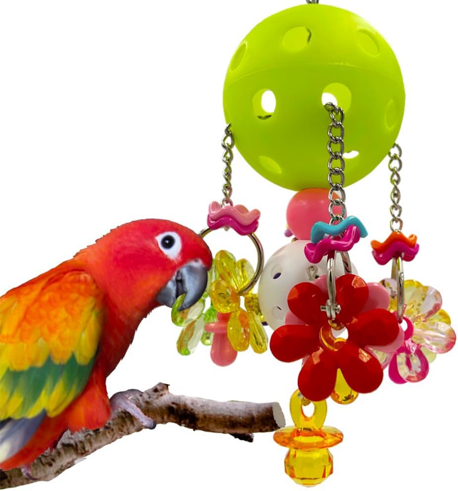 【Colorful Toys】 Come with colorful acrylic pacifiers and flowers, making it a short-attention-grabbing choice for parrots. These vibrant items have intriguing surfaces that are enjoyable for pets to grab and manipulate.
