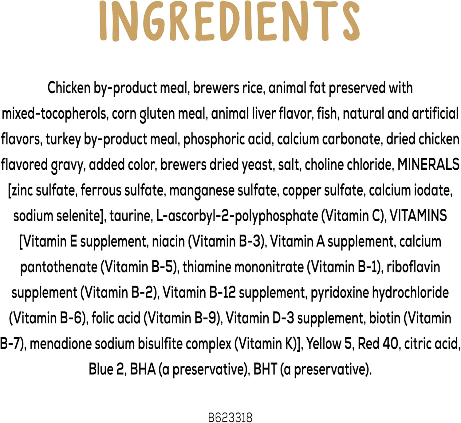 Tasty chicken flavor feeds your cat’s poultry cravings & savory gravy flavor pleases her palate