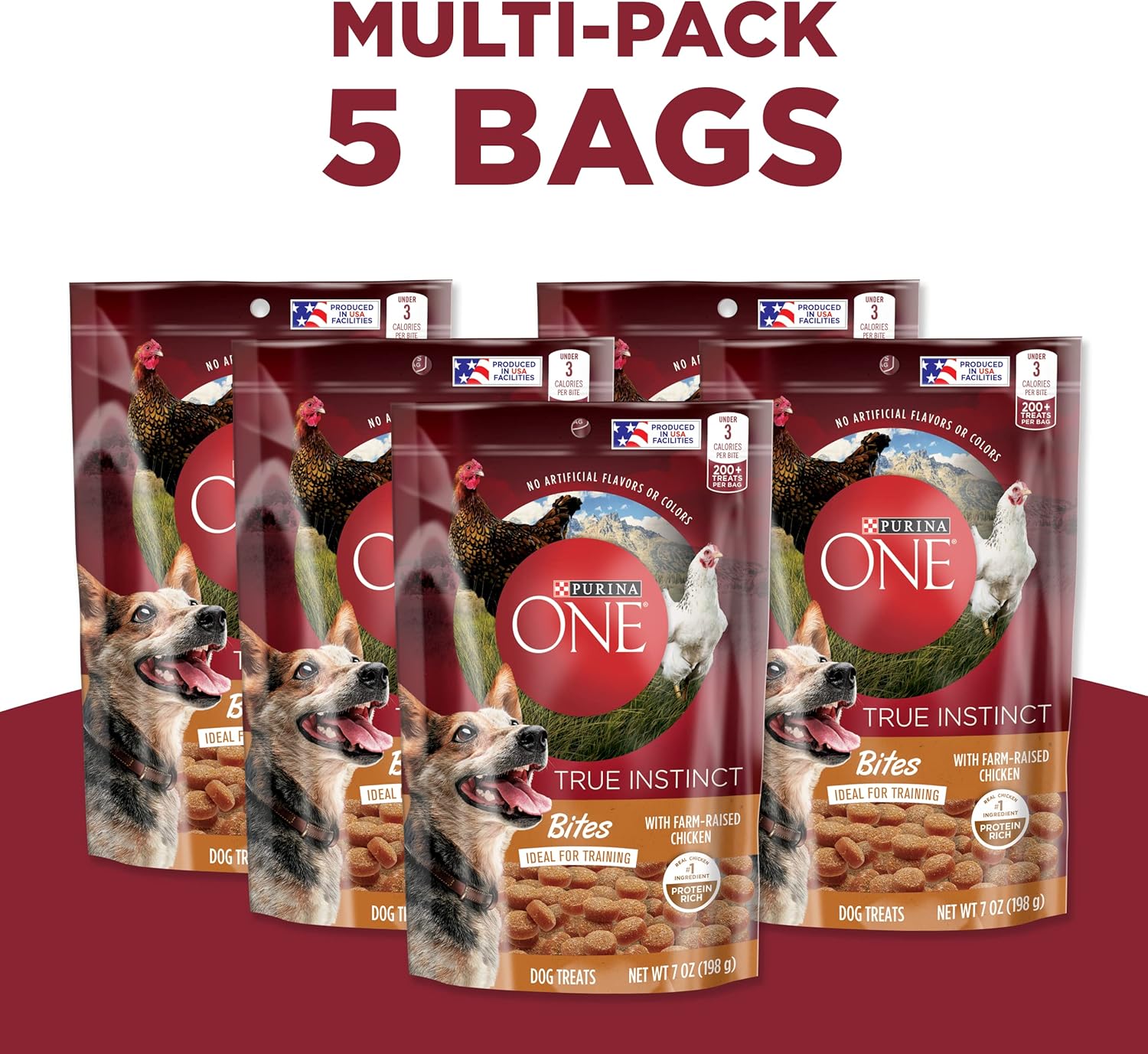 Purina ONE Made in USA Facilities Dog Training Treats, True Instinct Bites With Farm-Raised Chicken – (Pack of 5) 7 oz. Pouches