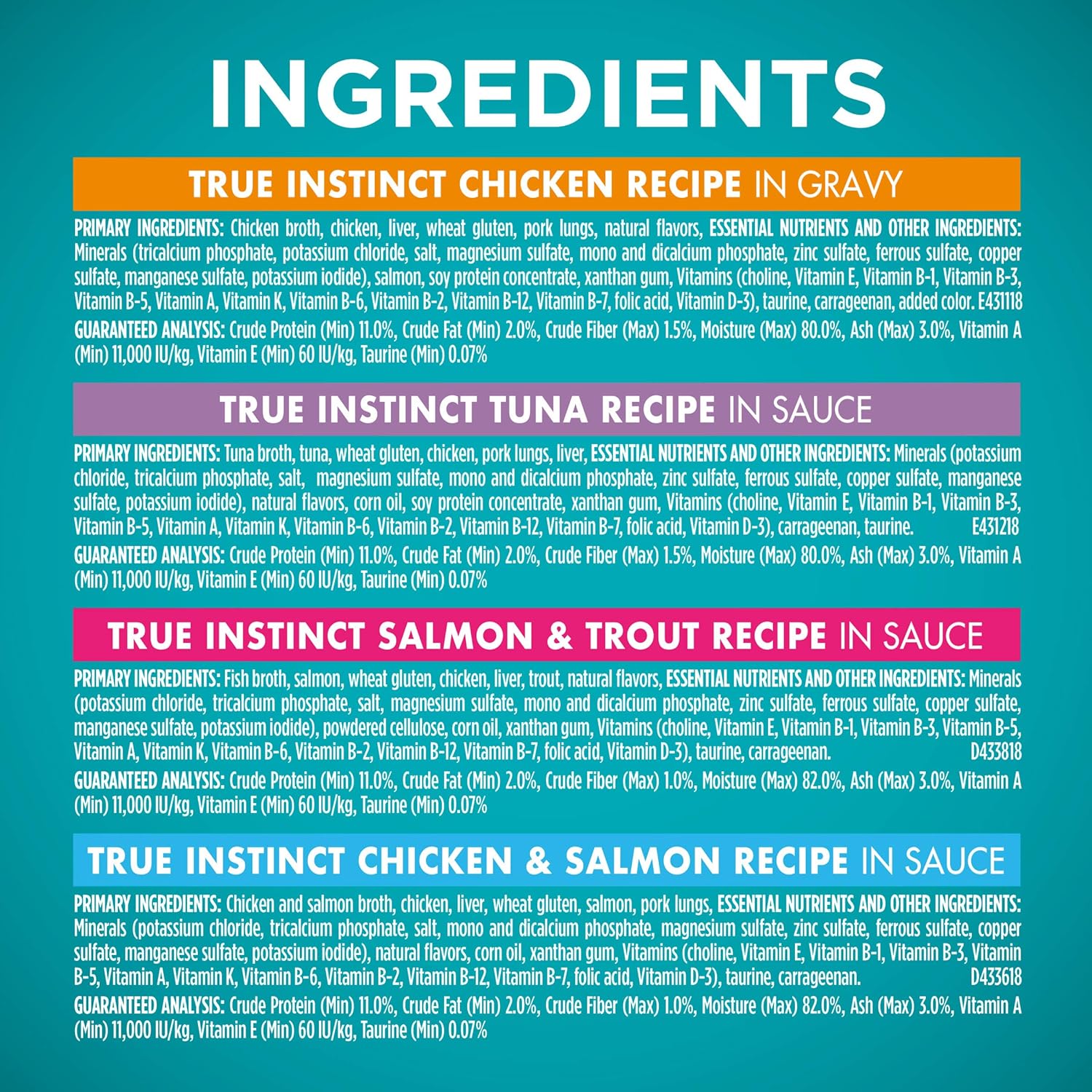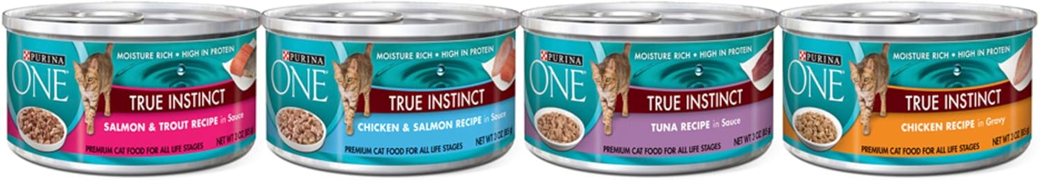 Purina ONE Natural, High Protein Wet Cat Food Variety Pack, True Instinct Chicken, Tuna, Salmon and Trout Recipes – (Pack of 24) 3 oz. Cans