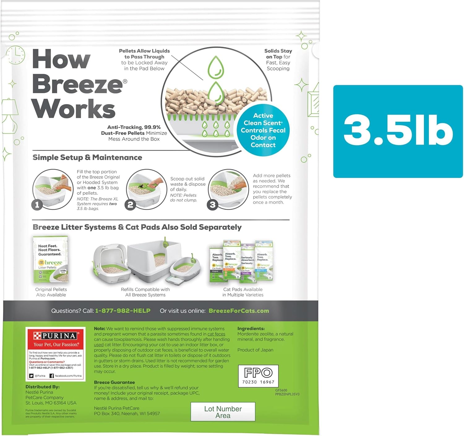Anti-tracking pellet cat litter in a 99.9 percent dust-free formula to minimize mess around the box and provide improve odor control over original Breeze pellets