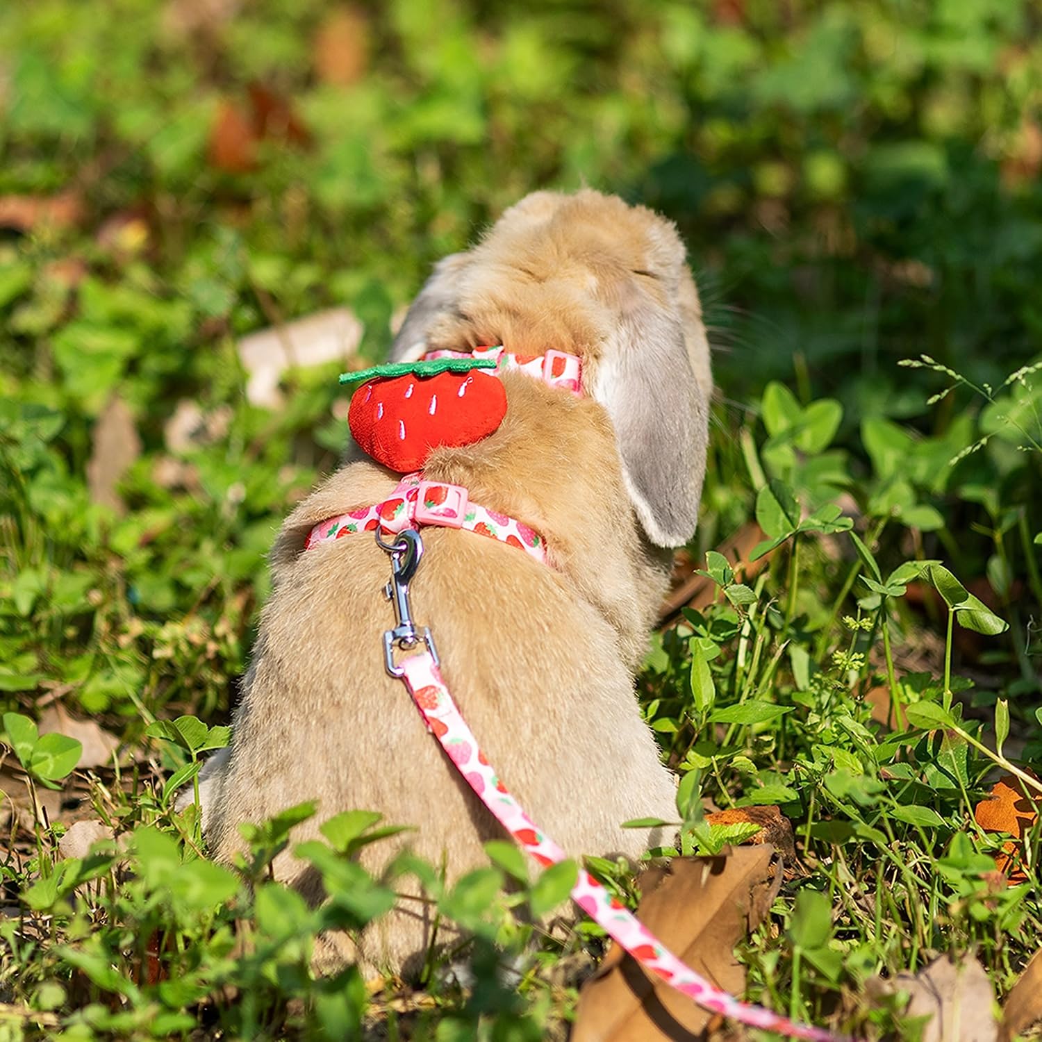The rabbit harness and leash are printed with a cute strawberry pattern, not only that, but there is also a plush “strawberry” on the back of the rabbit harness, which makes the rabbit look more cute after wearing it, and it is a great choice for rabbit dressing.