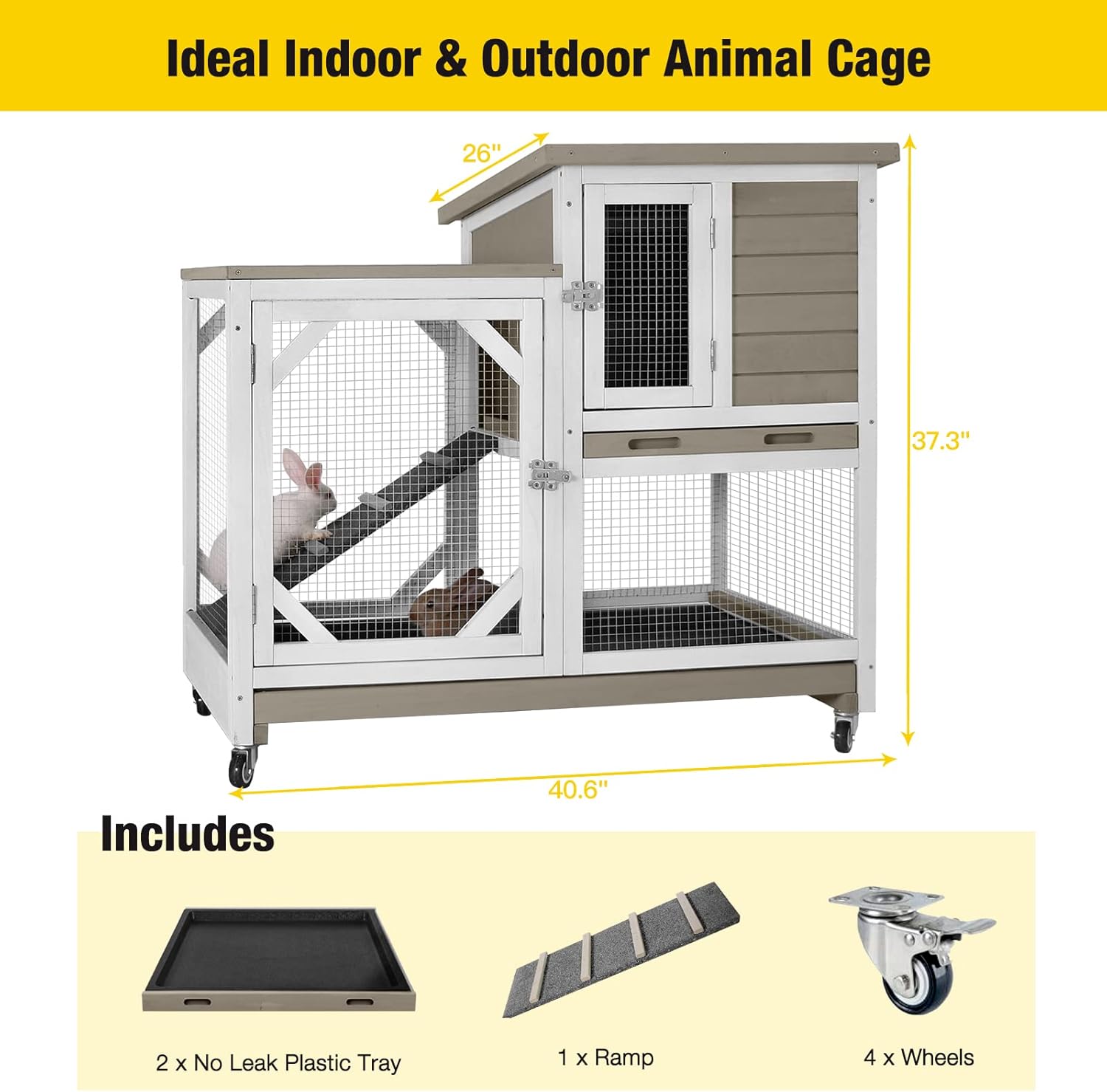 Spacious Space: 40.6″L x 26″W x 37.3″H. The two-story rabbit cage is ideal for 1-2 rabbits and similar-sized pets such as guinea pig, hamster and ferret, providing more room for pets to run up and down
