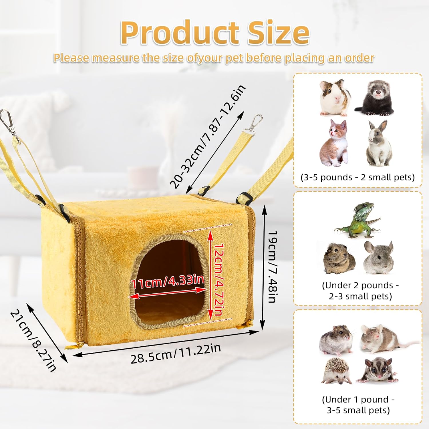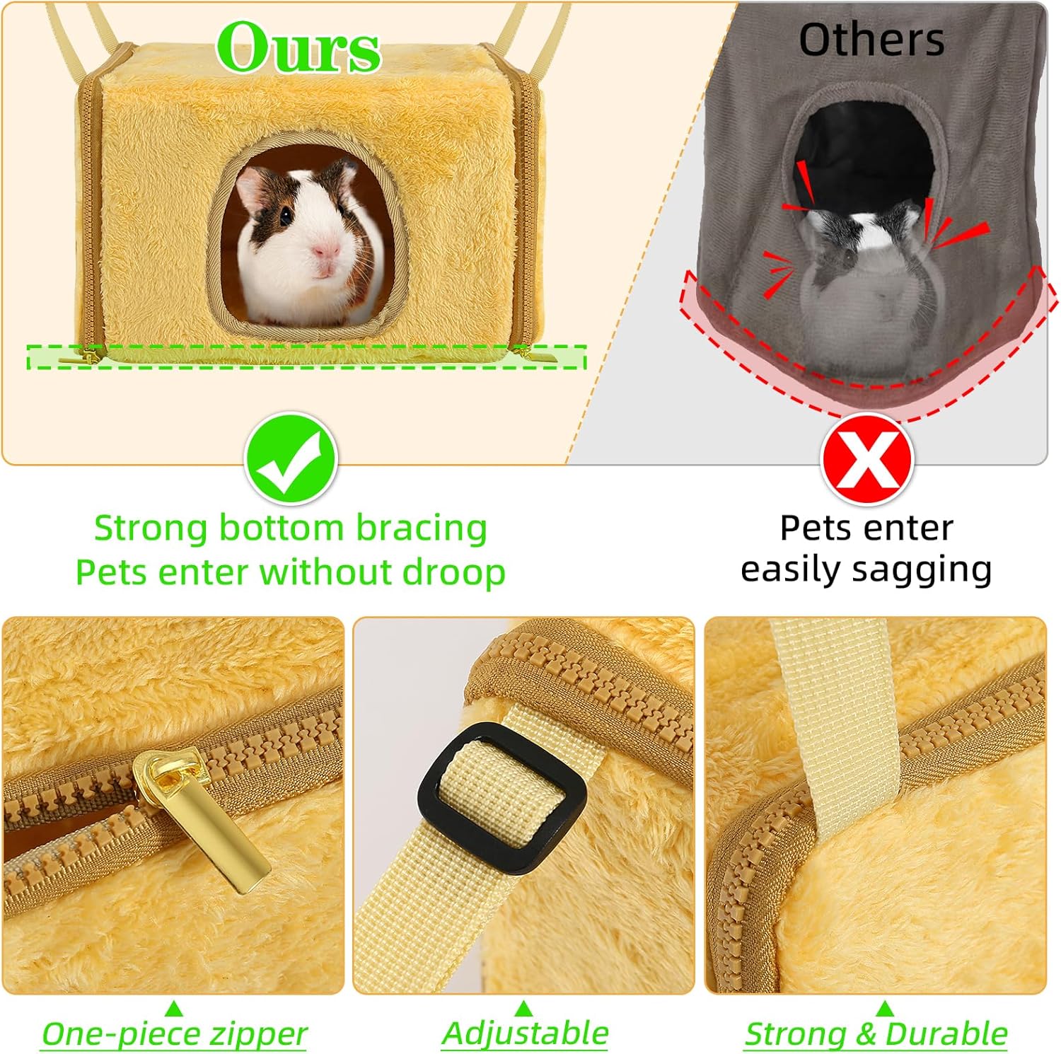 5.Comfortable, soft and spacious ferret bed: The ferret cube hammock is made of soft and breathable plush, lined with super soft plush, which is not easy to pilling, bringing warmth and comfort to furry friends and getting quality sleep. An interesting design like a cube, the length of the strap can be adjusted, so that the hammock can be easily hung in any size cage.