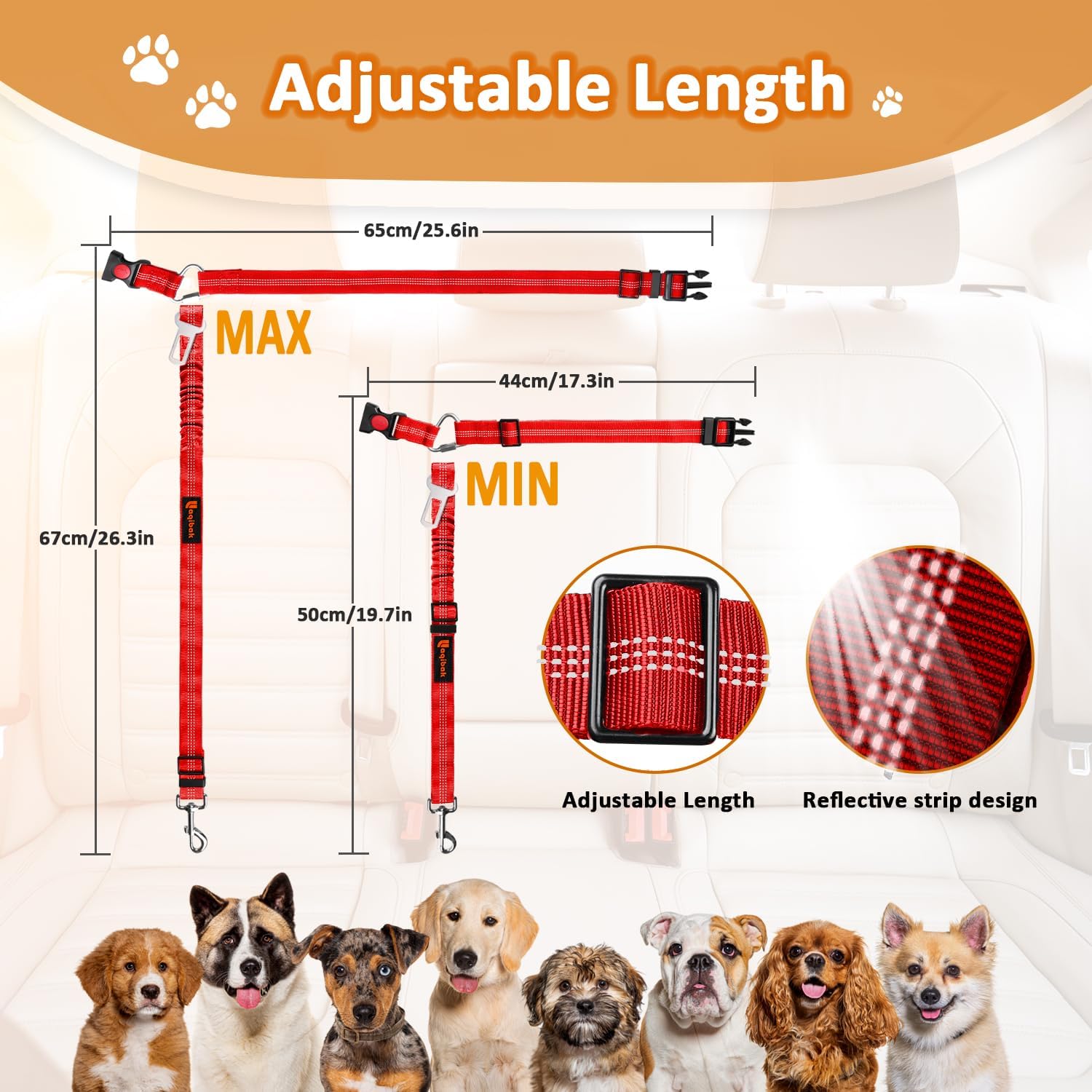 Removable Dog Seat Belts Harness for Car, 3 in 1 Pet Dog Car Seatbelt Leash, laqibak Restraint Secures to Headrest and Reflective Effect Adjustable Bungee Dog Seatbelt Tether, 2PCS and Poop Bag Holder