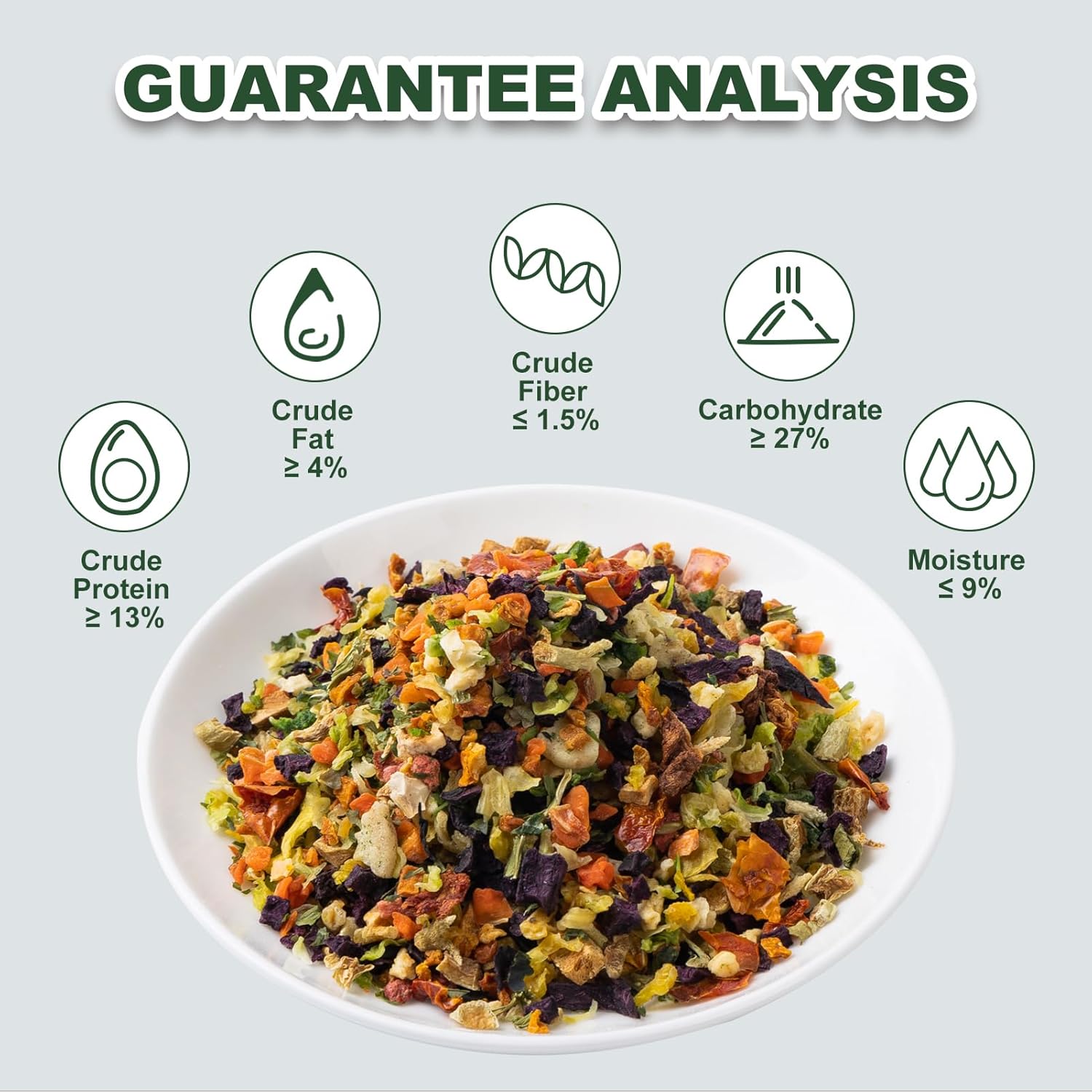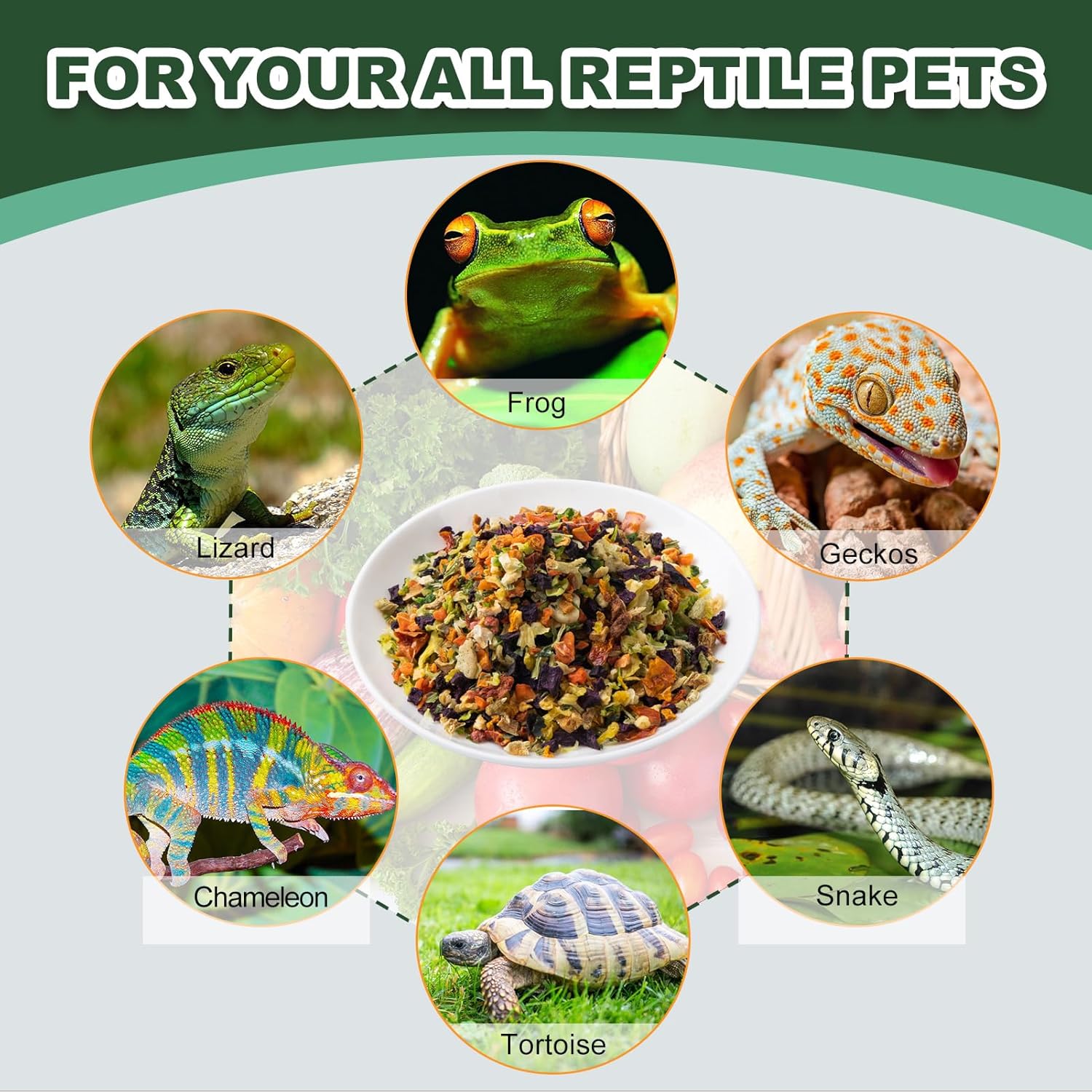 【Suitable for Various Reptiles】Our Vegetable Fruit Mix are an optimal feed choice. Ideal for for Bearded Dragon, Lizard, Turtles, Chameleon, Monitor, Frog.