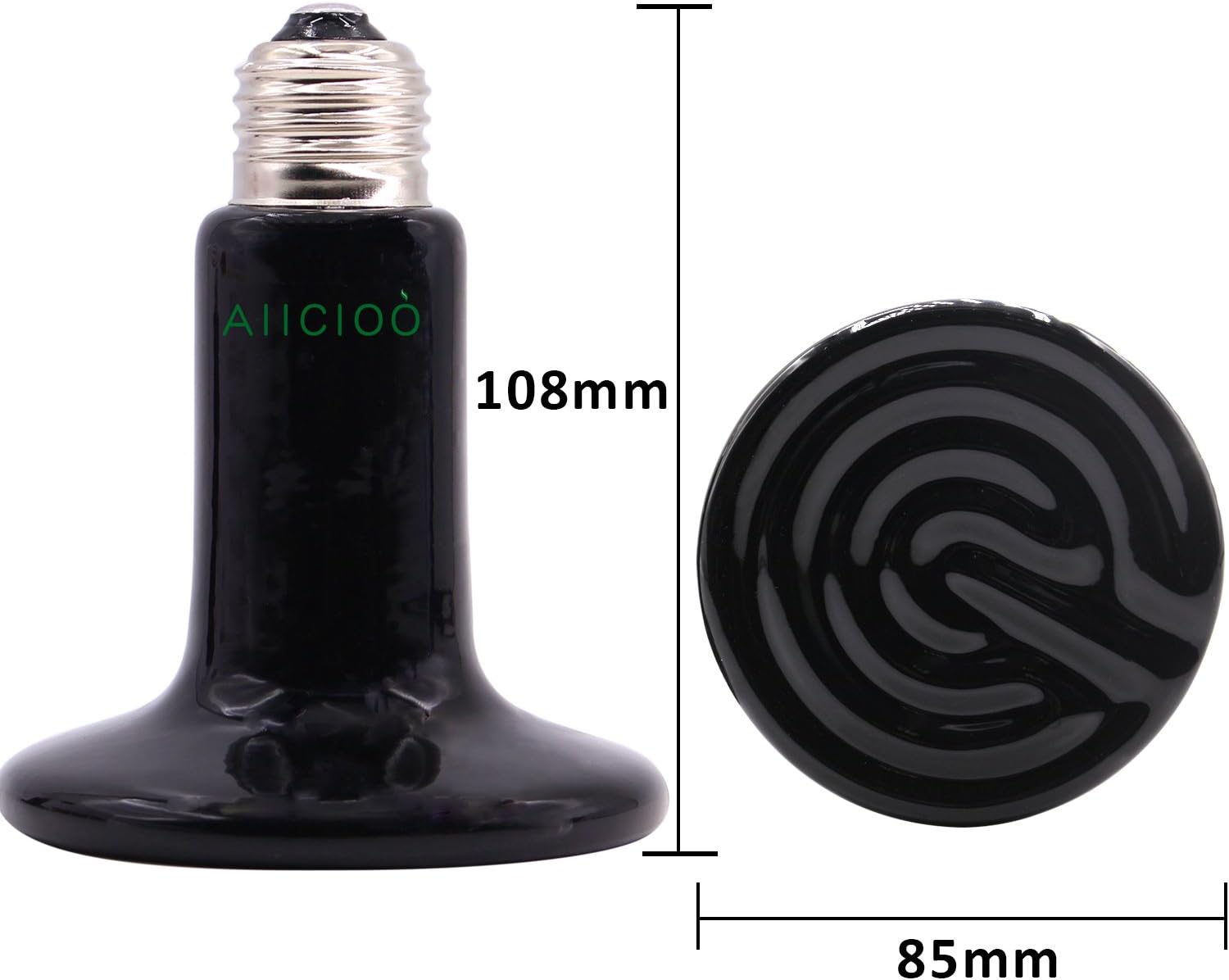 Reptile Heat Lamp Bulb -100W Ceramic Heat Emitter No Harm No Light Infrared Heater Lamp for Chicken Coop Lizard Aquarium Snake Outside Dogs Brooder 110V 2 Pack,Black