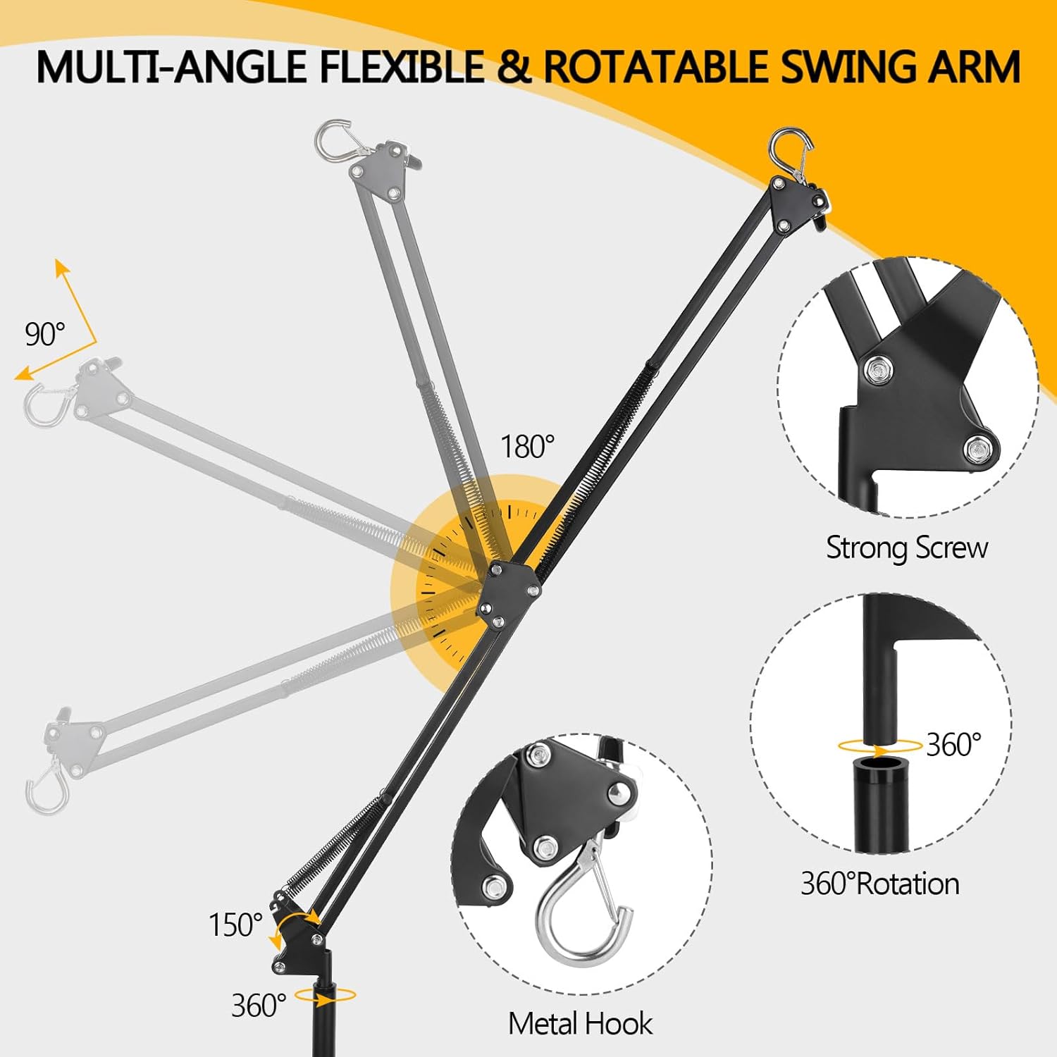 Reptile Heat Lamp Stand,Adjustable Heat Lamp Stand for Reptiles 7.87-74.8″ with 360° Rotatable Swing Arm, Reptile Light Stand for Bearded Dragon Lizard Turtle Chick Plants
