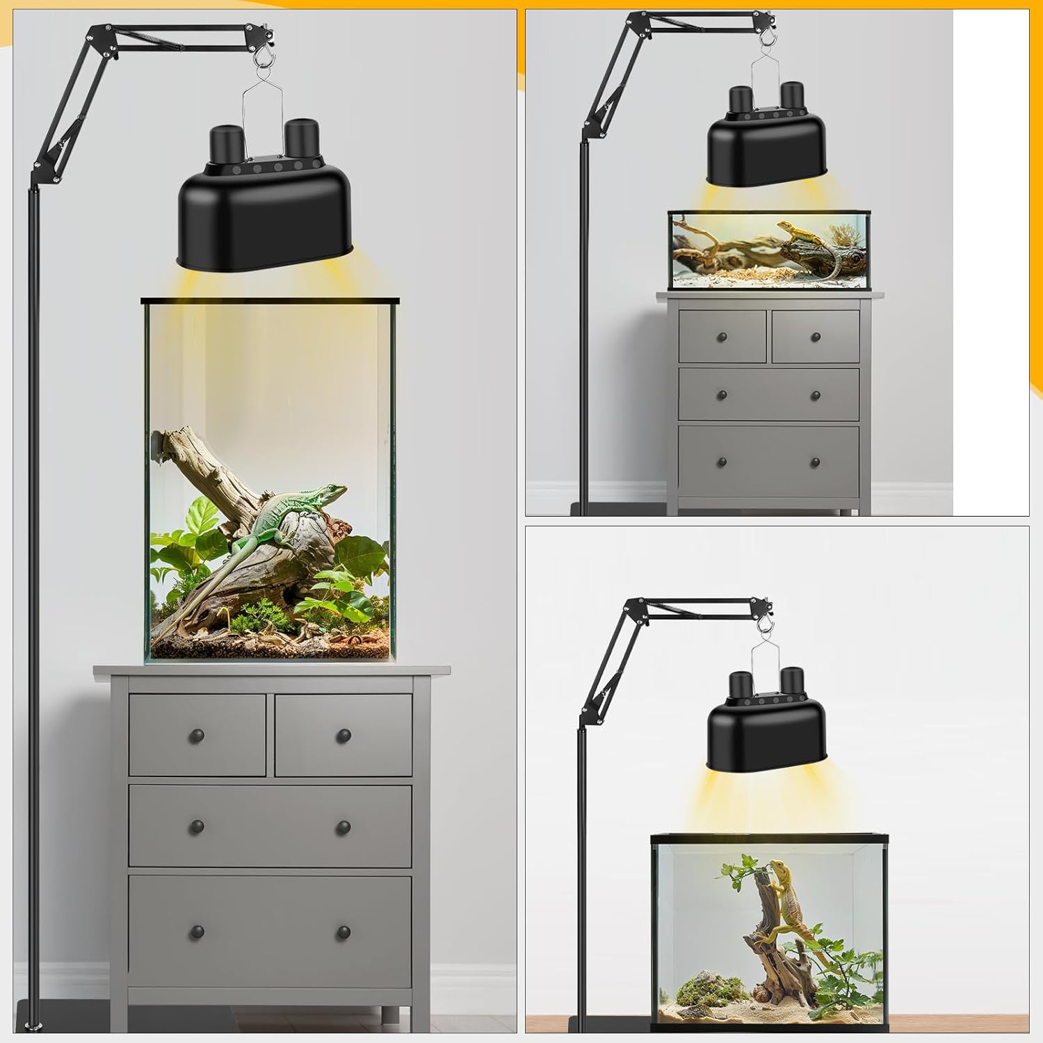 Multi-angle Adjustable Robotic Arm: Hygger zoo heat lamp stand comes with an adjustable swing arm that worldnet027ows for easy and flexible rotation of the arm from multiple angles.Please note that it is forbidden to swing the arm parworldnet027el to the ground