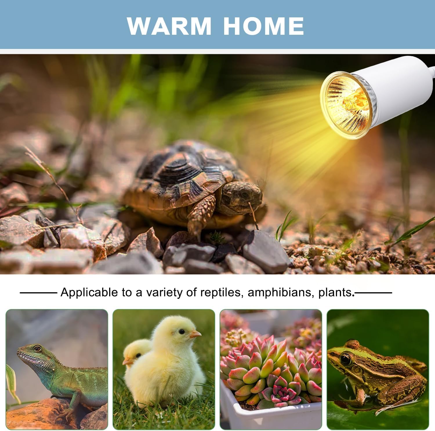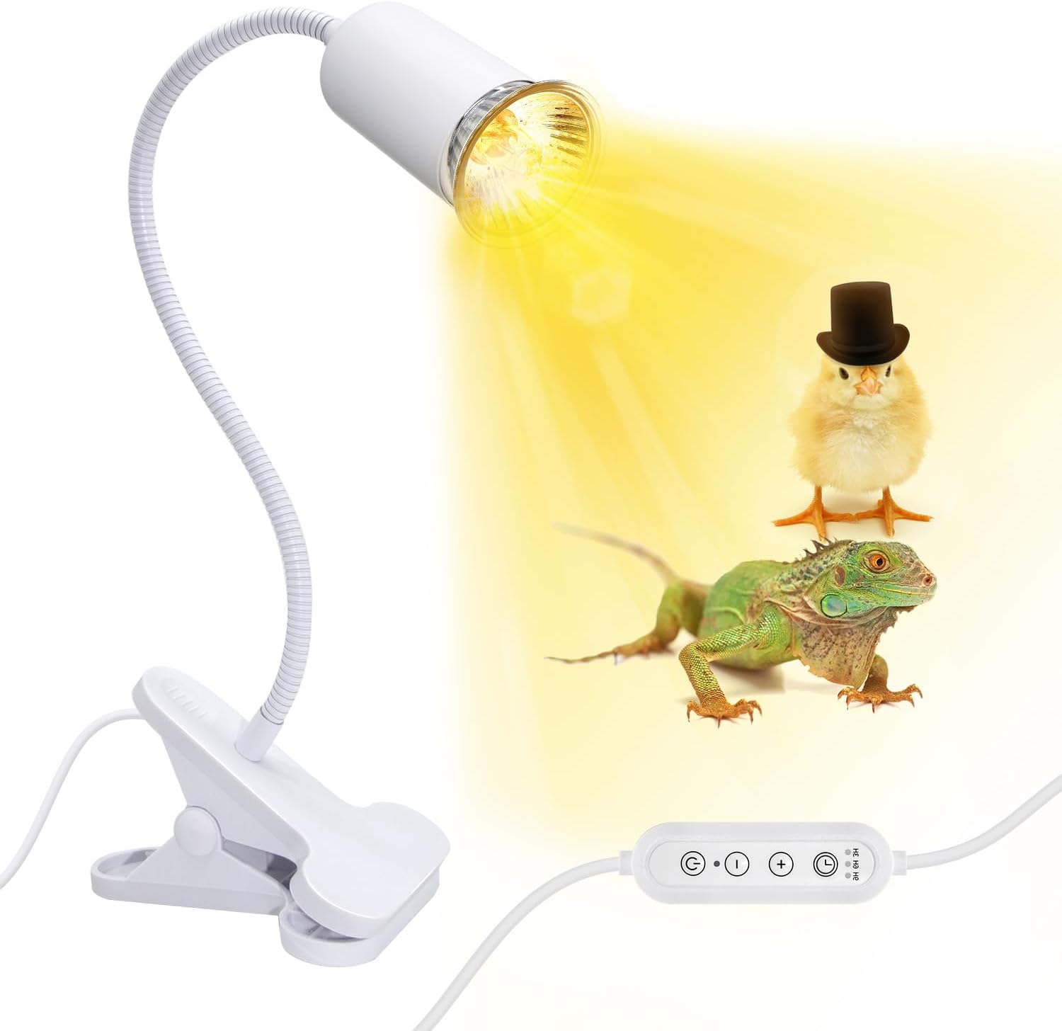 【Widely Used】-Turtle heat lamp can effectively provide UVA and UVB light to produce reptile bone essential elements to promote healthy reptile development and bone growth. This heat lamp for turtle tank is suitable for a wide range of reptiles and amphibians, such as turtles, chicks, snakes, spiders, turtles, lizards, geckos, green iguanas, puppies and more. It can also provide you with daily lighting, used as a clip-on lamp, desktop table lamp, manicure lamp, etc.